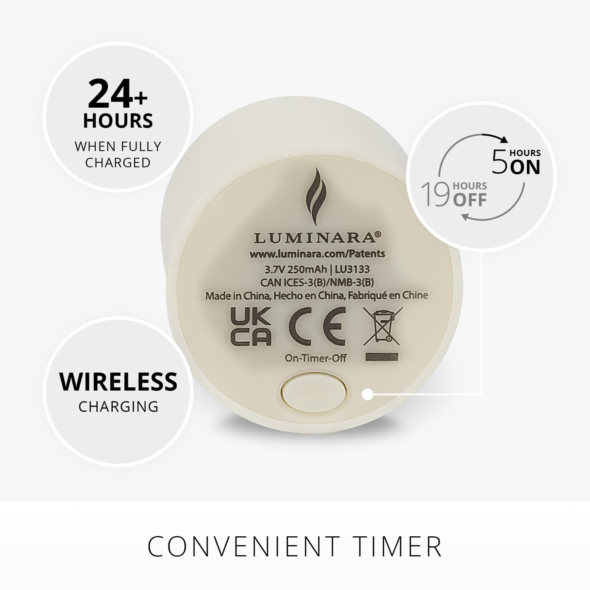 The Luminara Replacement Rechargeable Tealights – Set of 2 will provide 24 hours of continuous illumination per charge and are compatible exclusively with the Luminara Tealight Charging Base (sold separately). Please note that you must have the charging base in order to charge these tealight replacements.