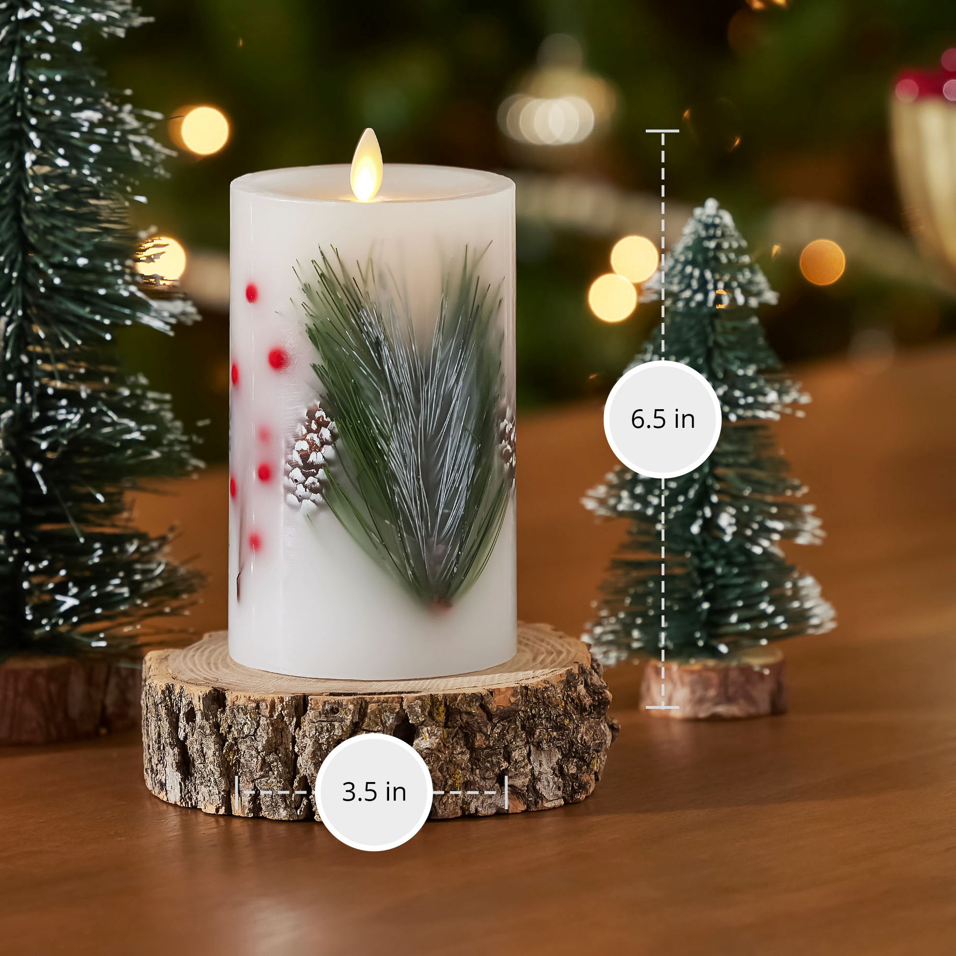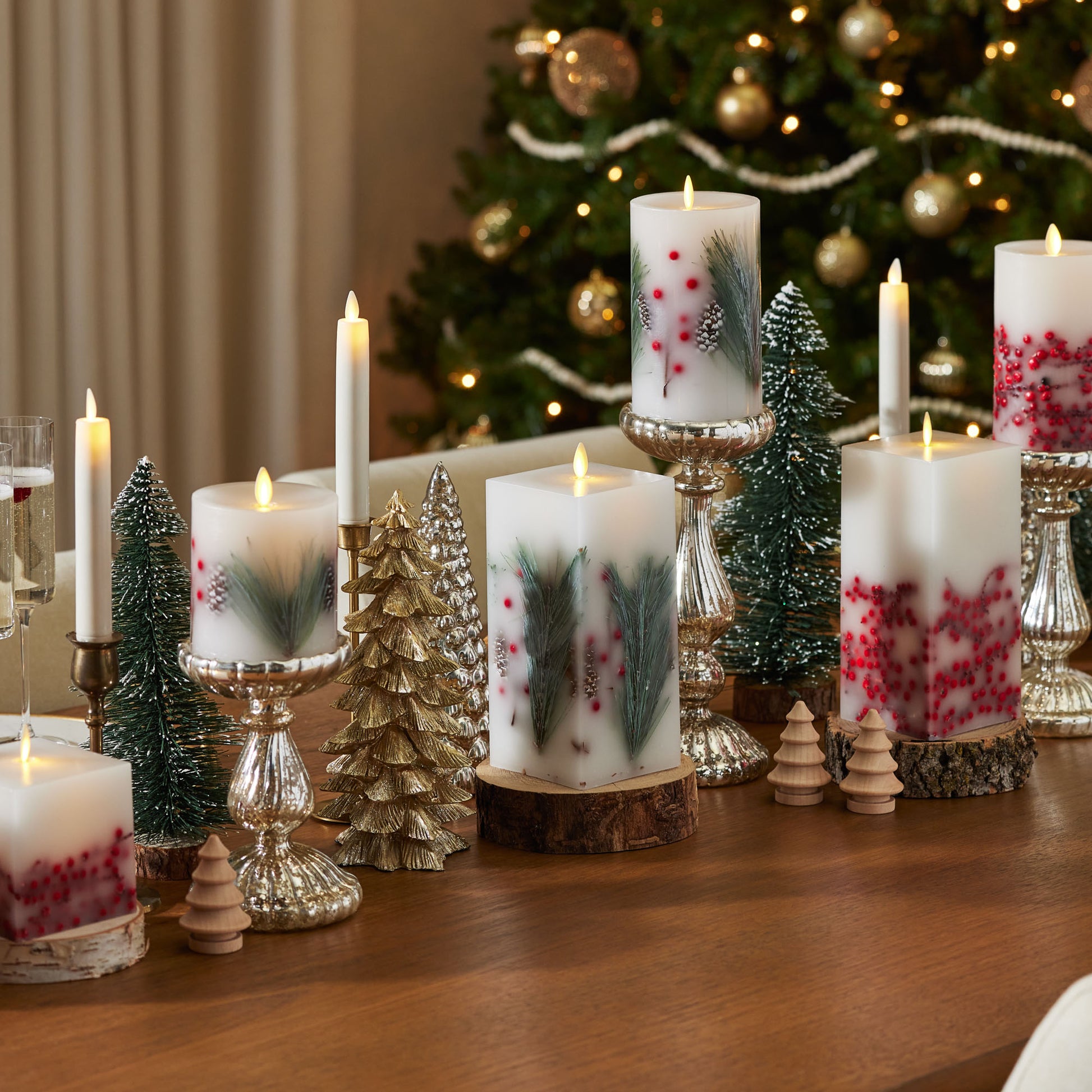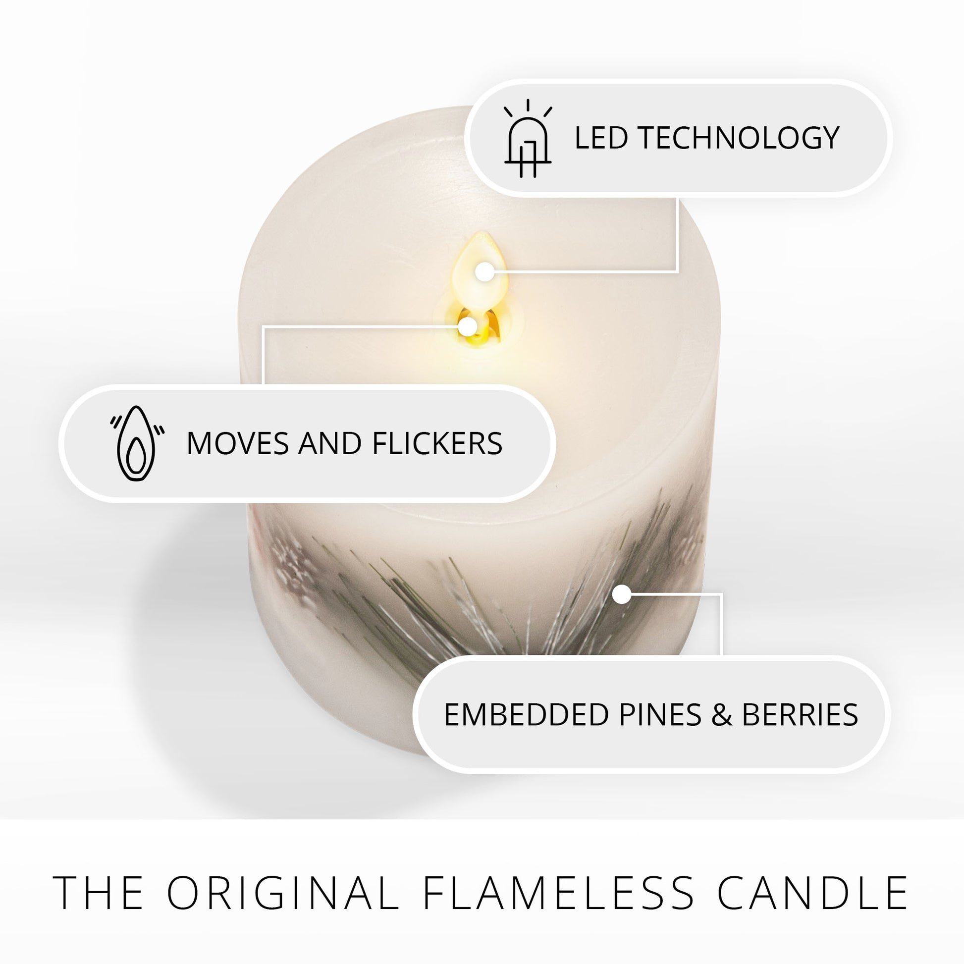Embedded Pine, Berries & Pinecones Flameless Candle Pillar