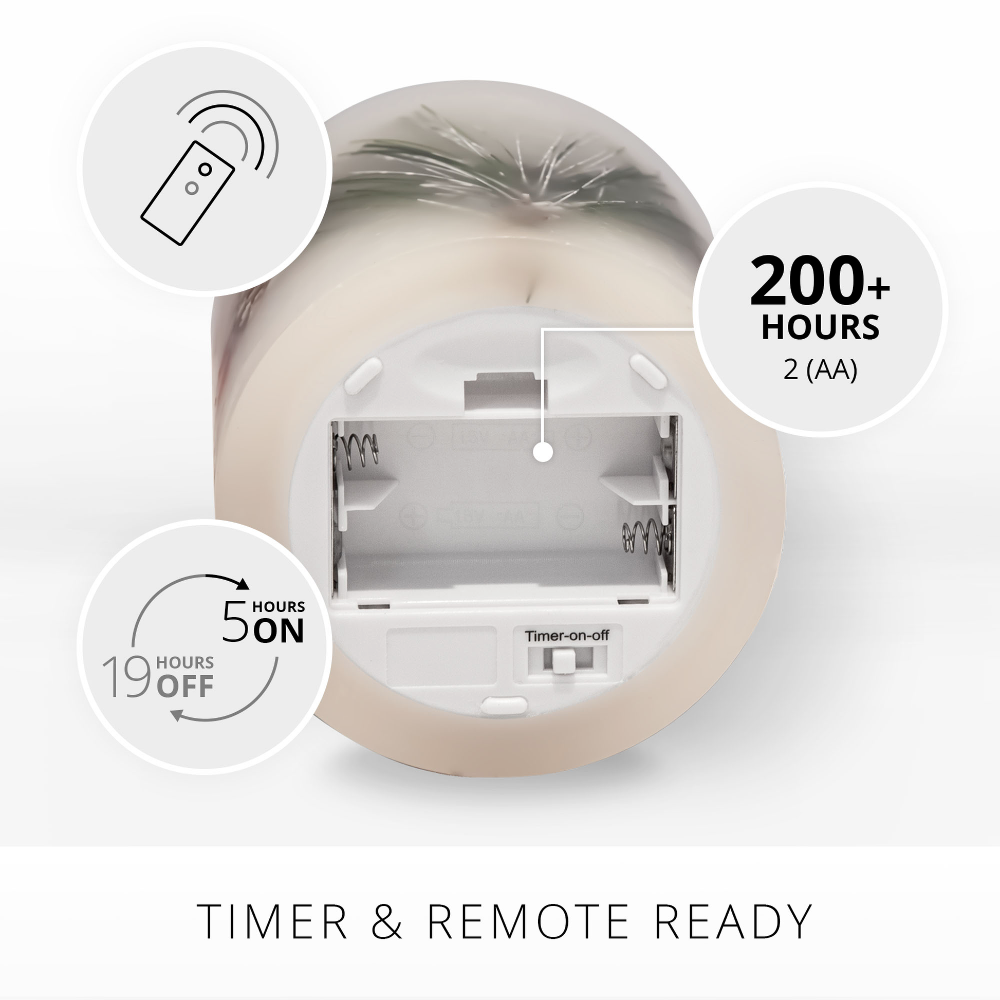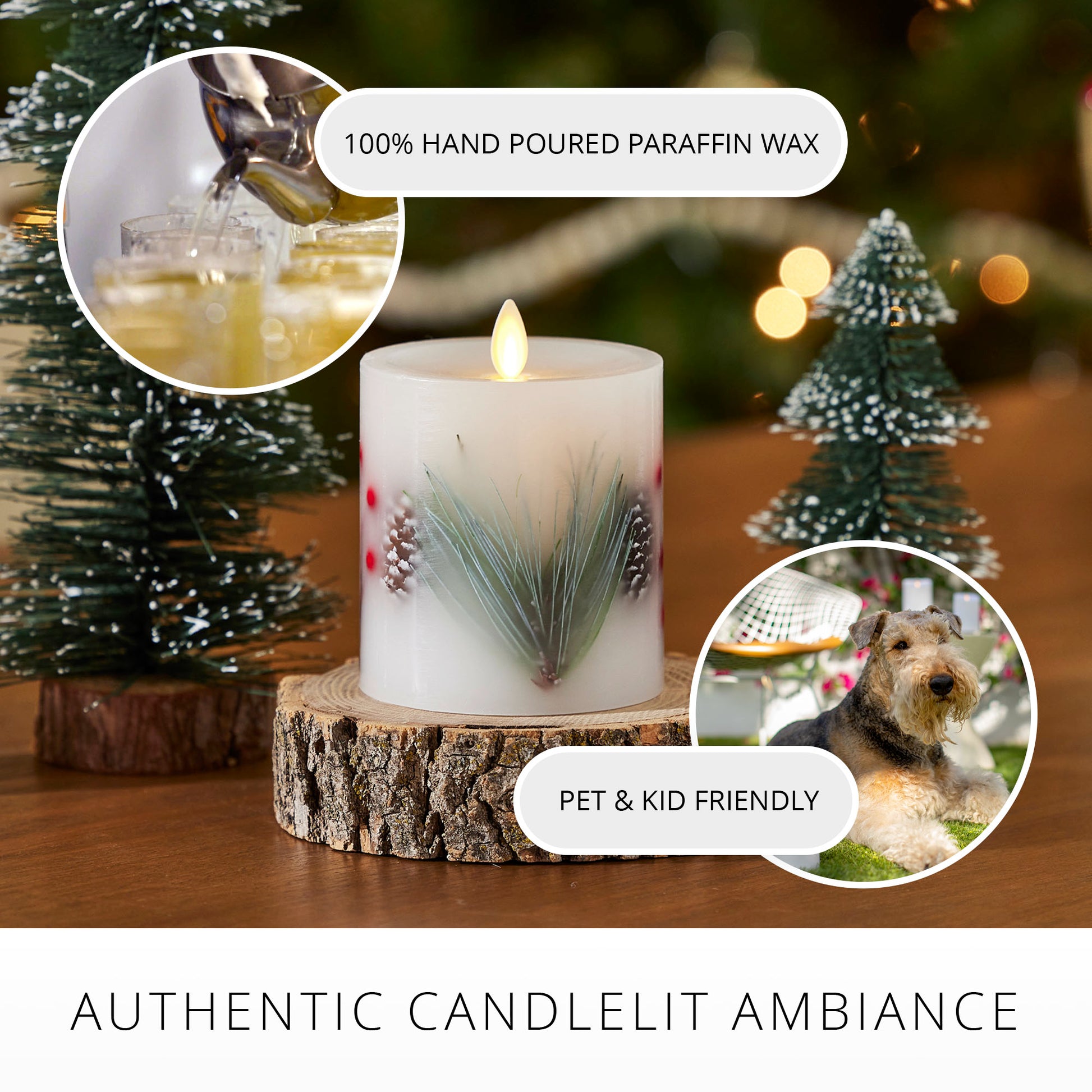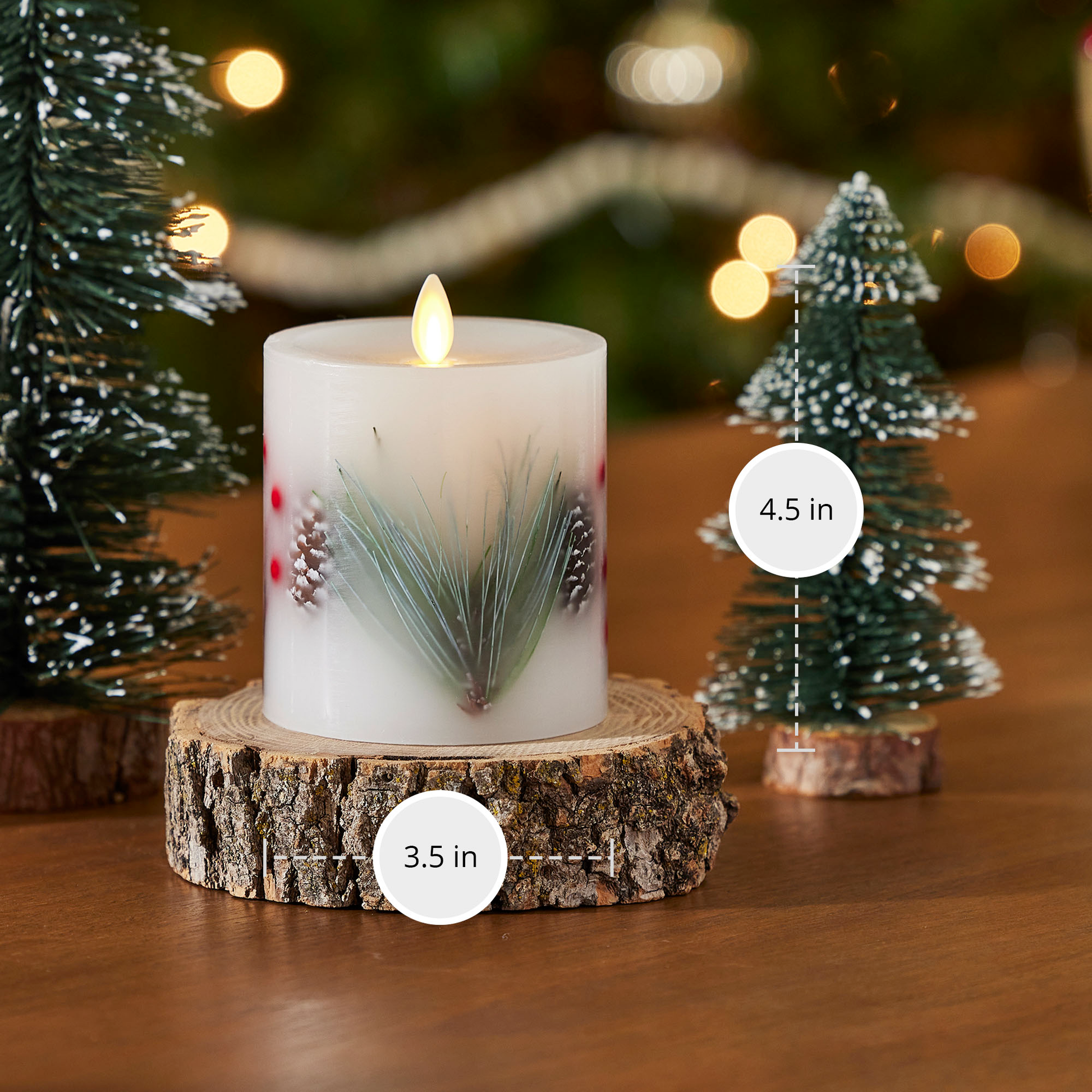 Embedded Pine, Berries & Pinecones Flameless Candle Pillar
