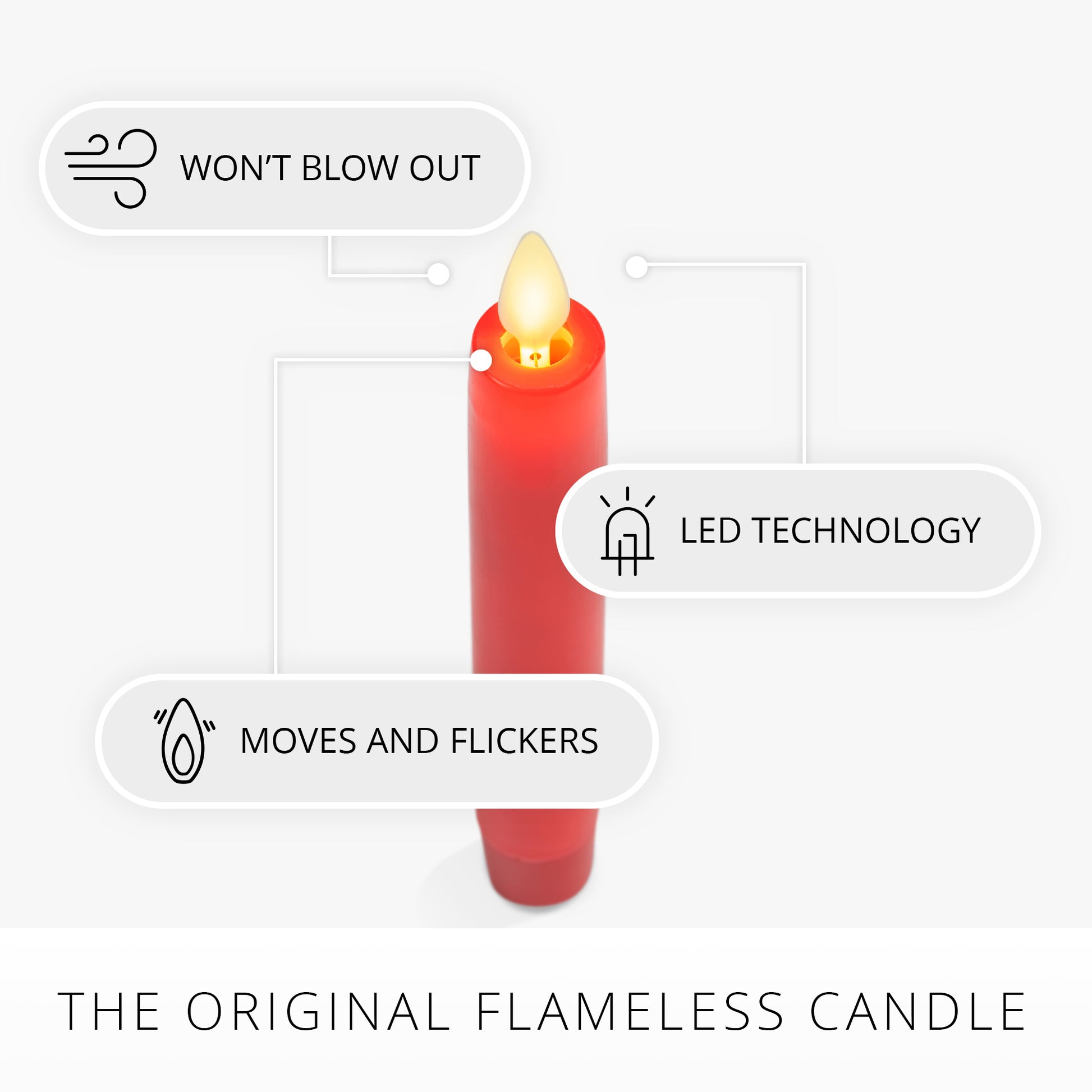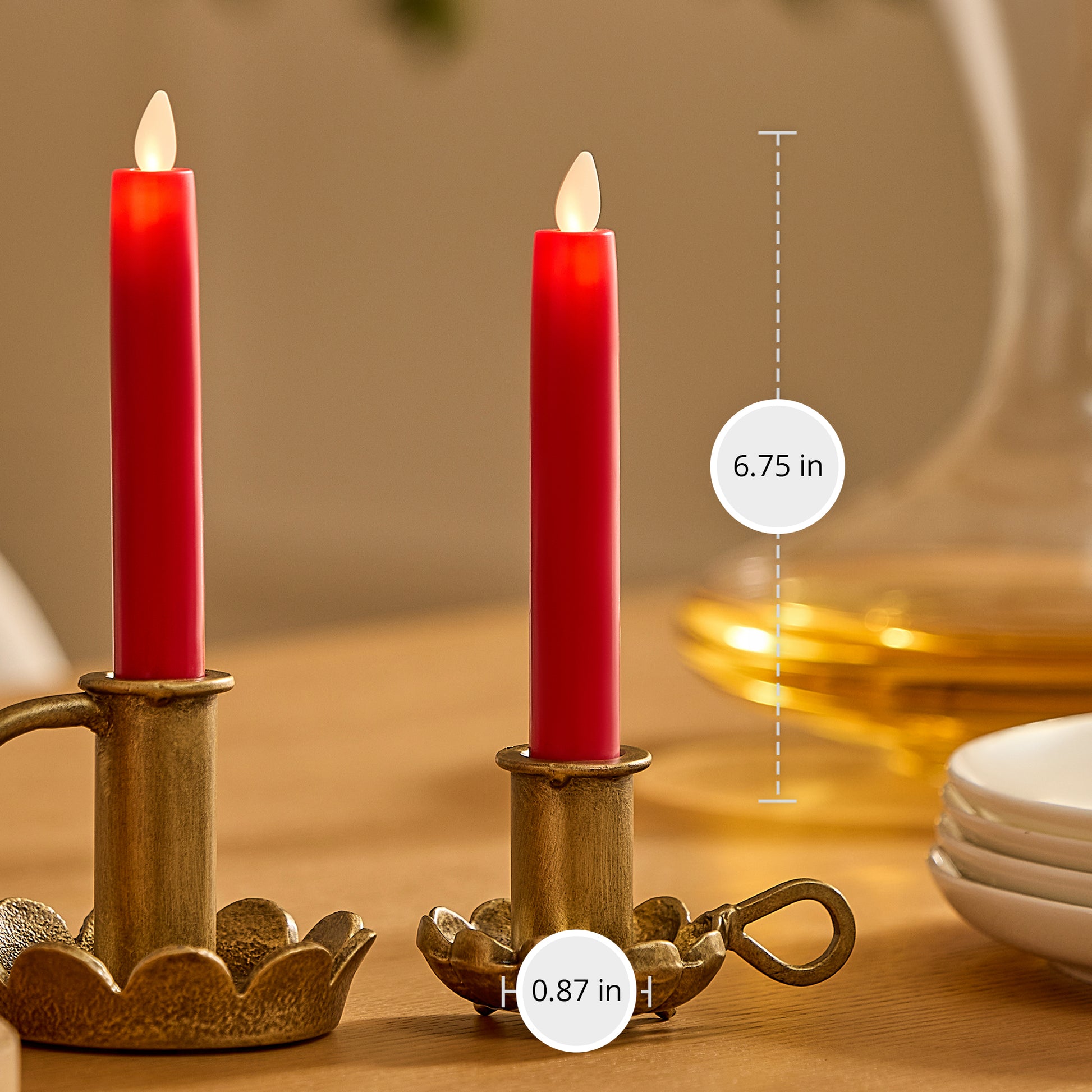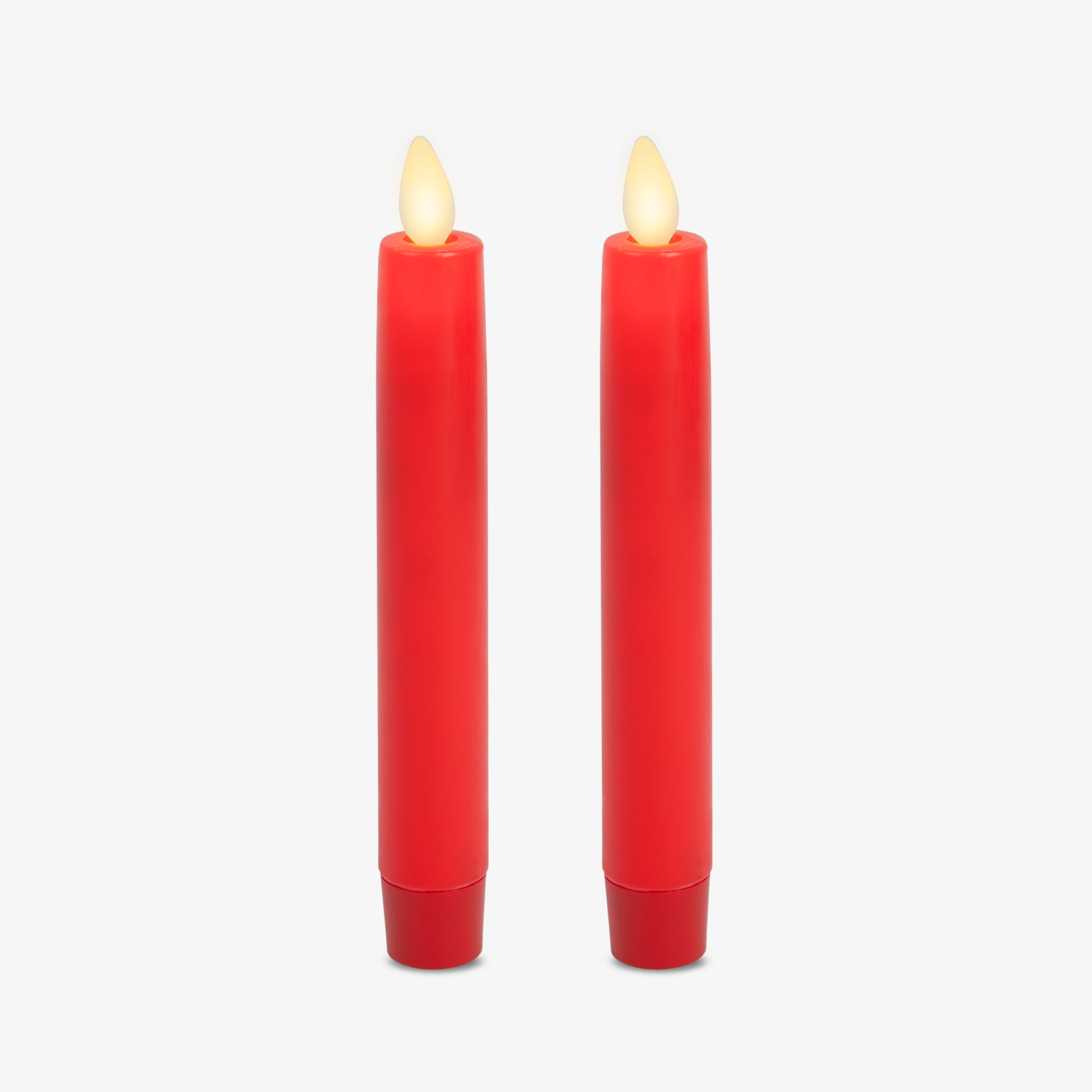 True Red Flameless Candle Tapers - Flat Top - 6.75" Height - Set of 2