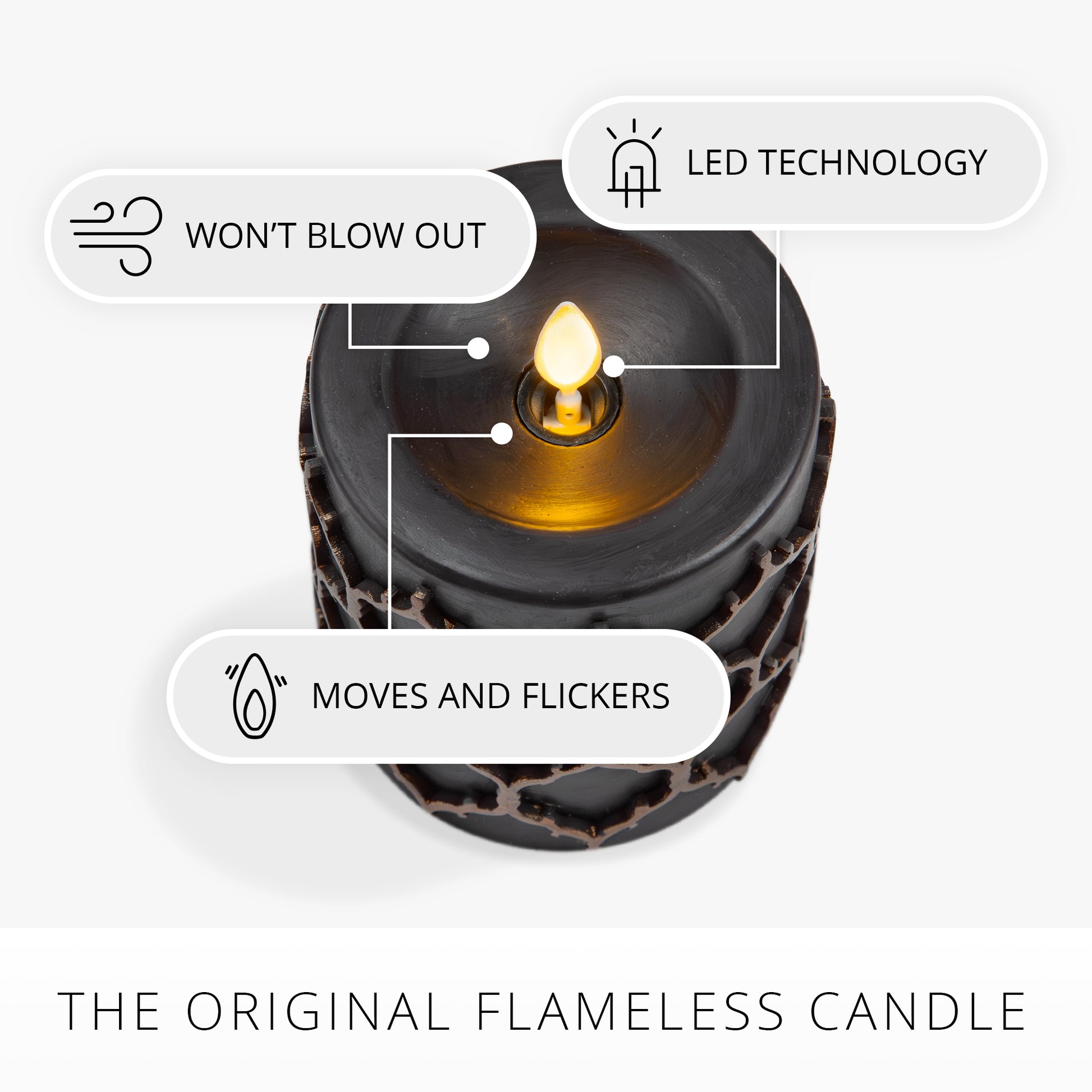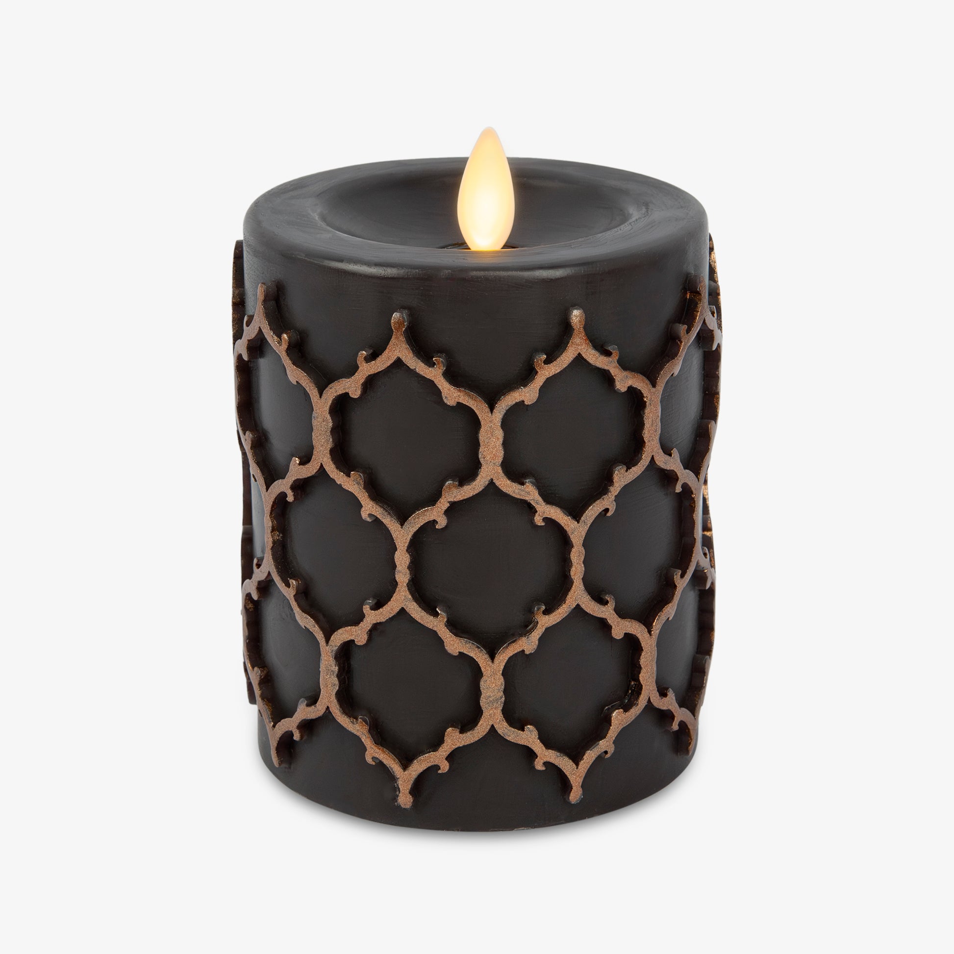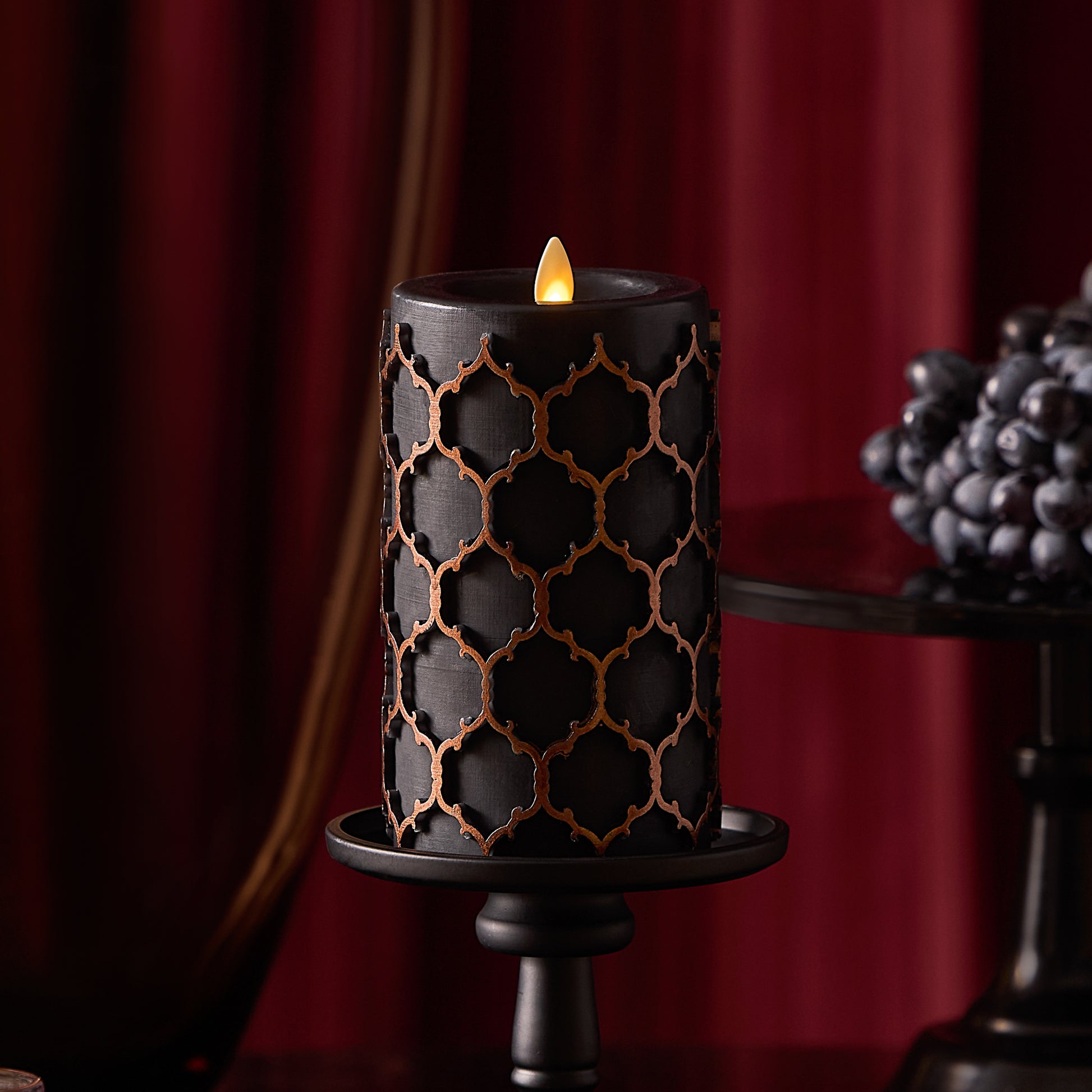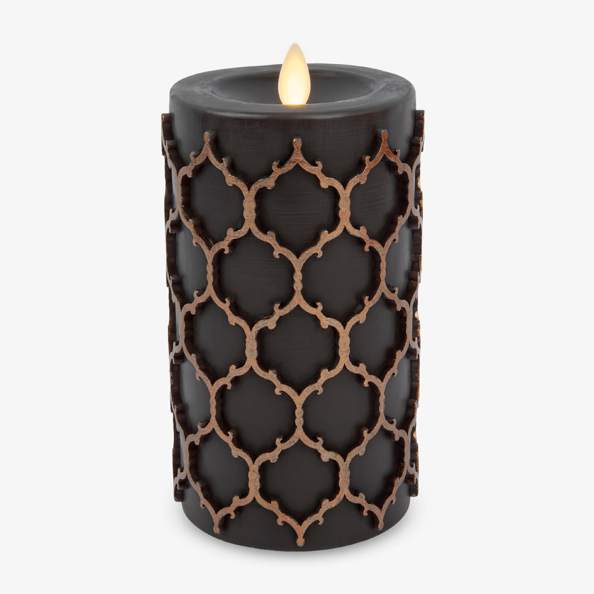 Black Embossed Fretwork Flameless Candle Pillar