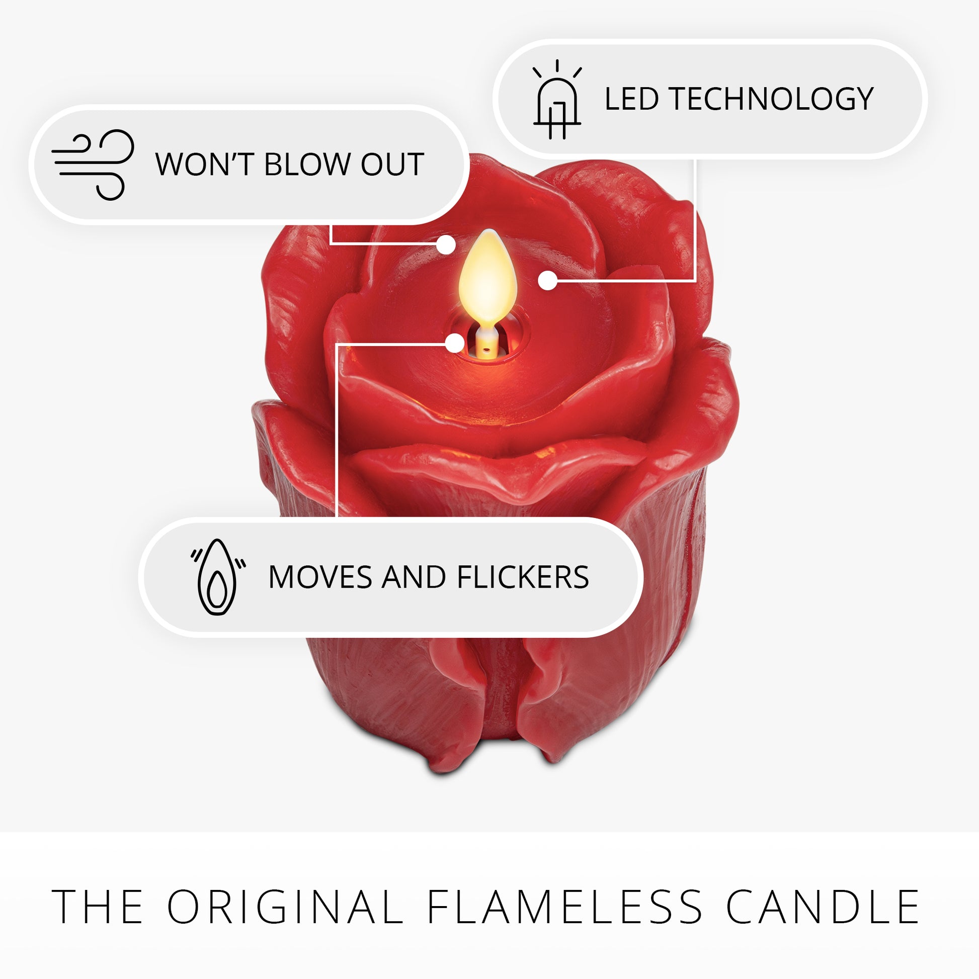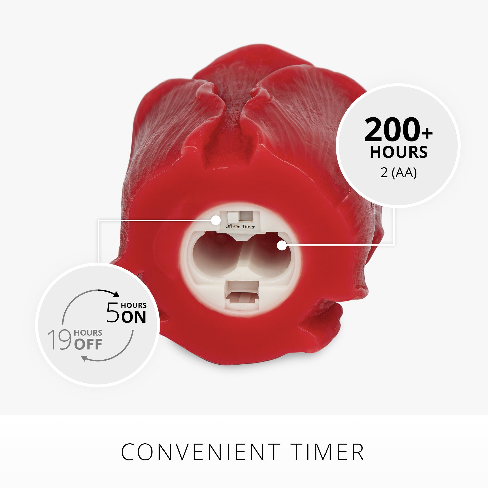 The True Red Rose Bud flameless candle was especially developed to mimic the real folds and curves of beautiful red roses. The rich and vibrant red color looks stunning under the candle’s patented Luminara moving-flame technology, making it as safe as it is beautiful – a perfect gift for moms this Mother’s Day. Style Luminara Rose Bud flameless candles across mantle pieces or place them on top of tablescapes to create a warm and inviting setting that radiates as much as Mom.Technical Specifications