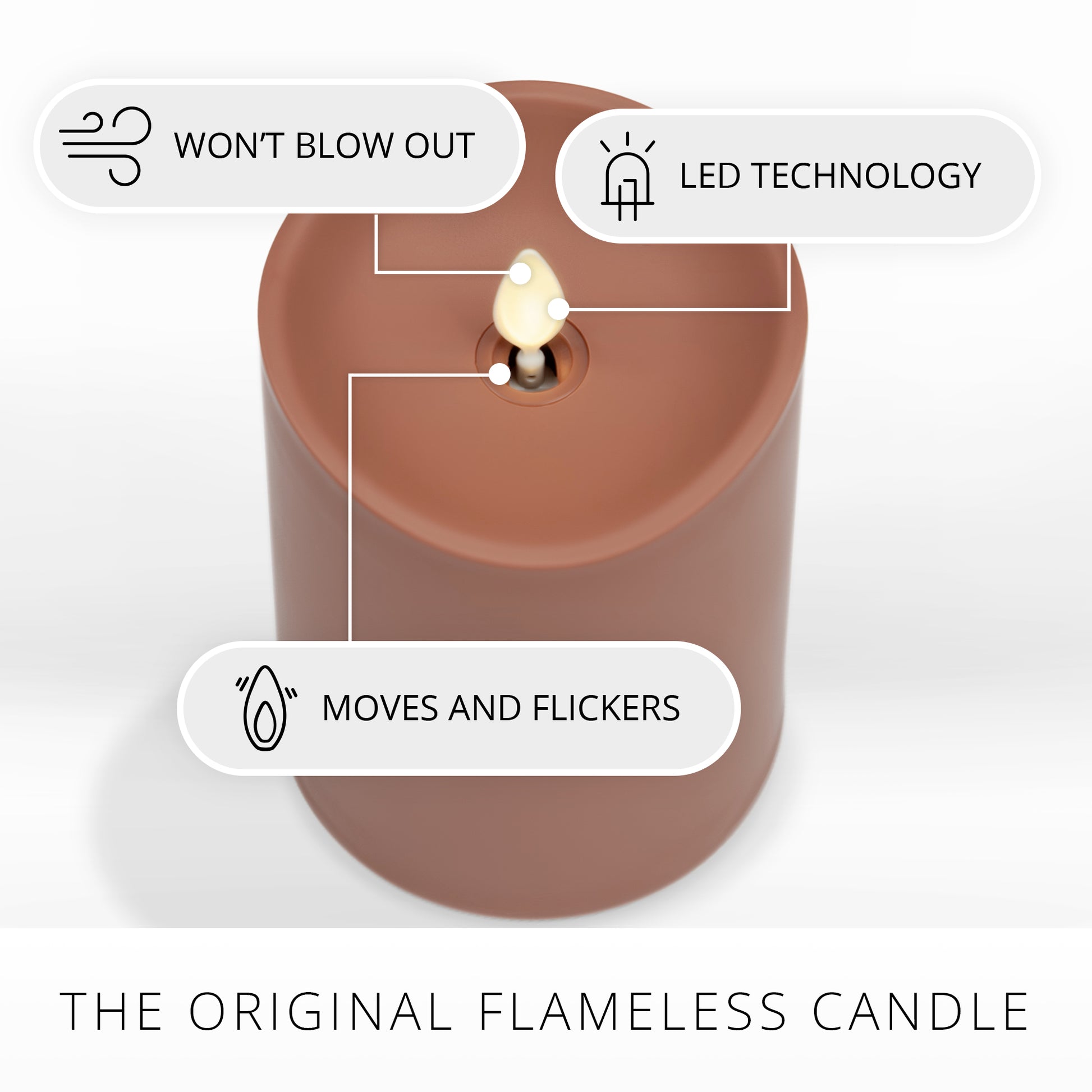 Our LED light shoots diagonally to the center of the flame piece creating an effect that convincingly reproduces the look of a traditional burning candle.
