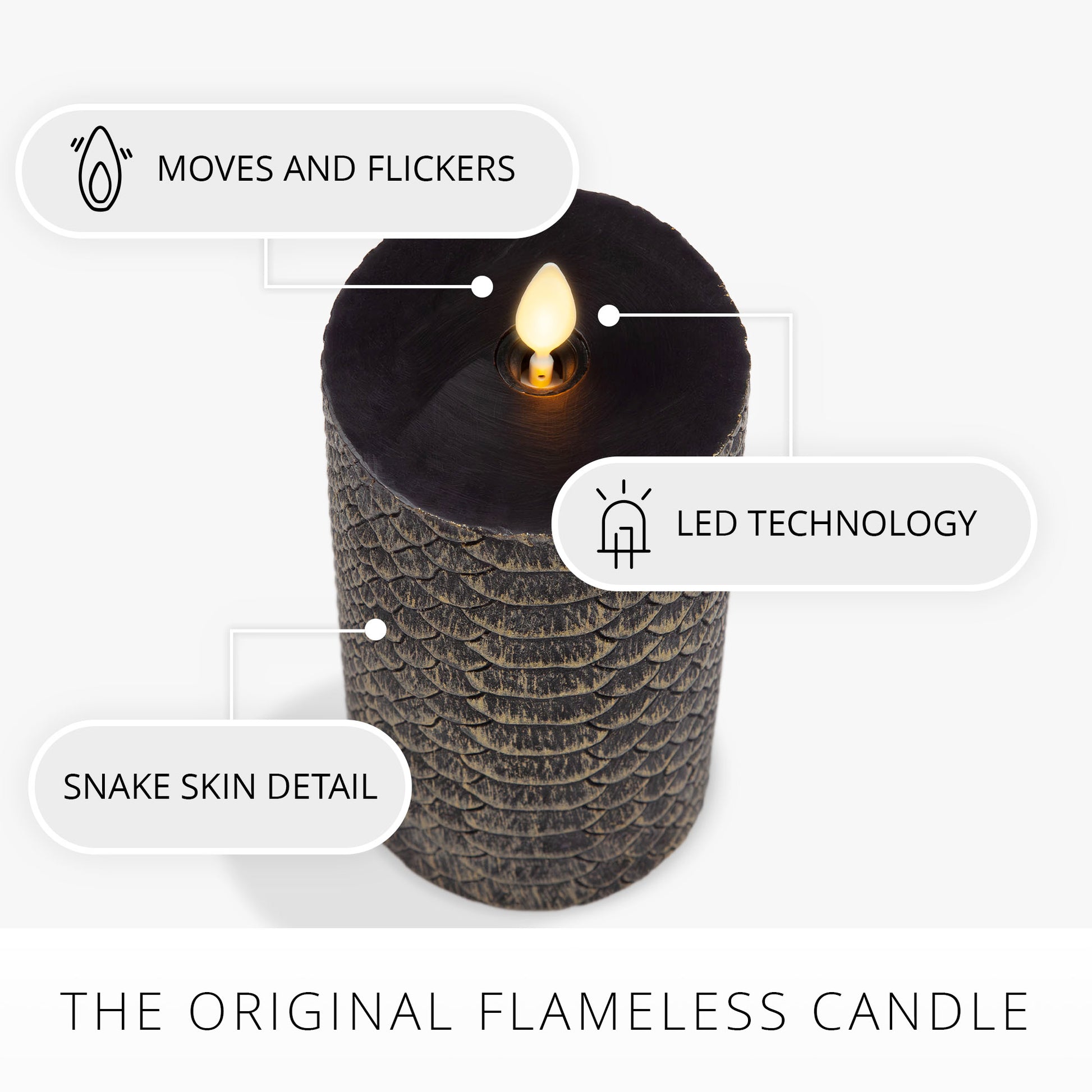 Black and Gold Snakeskin Flameless Candle Pillar