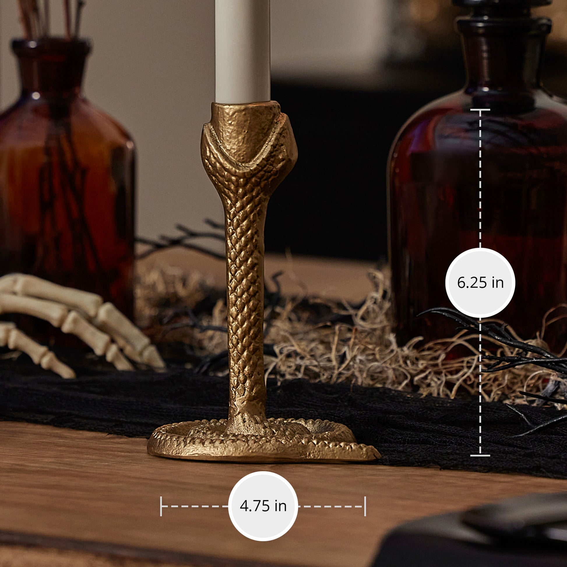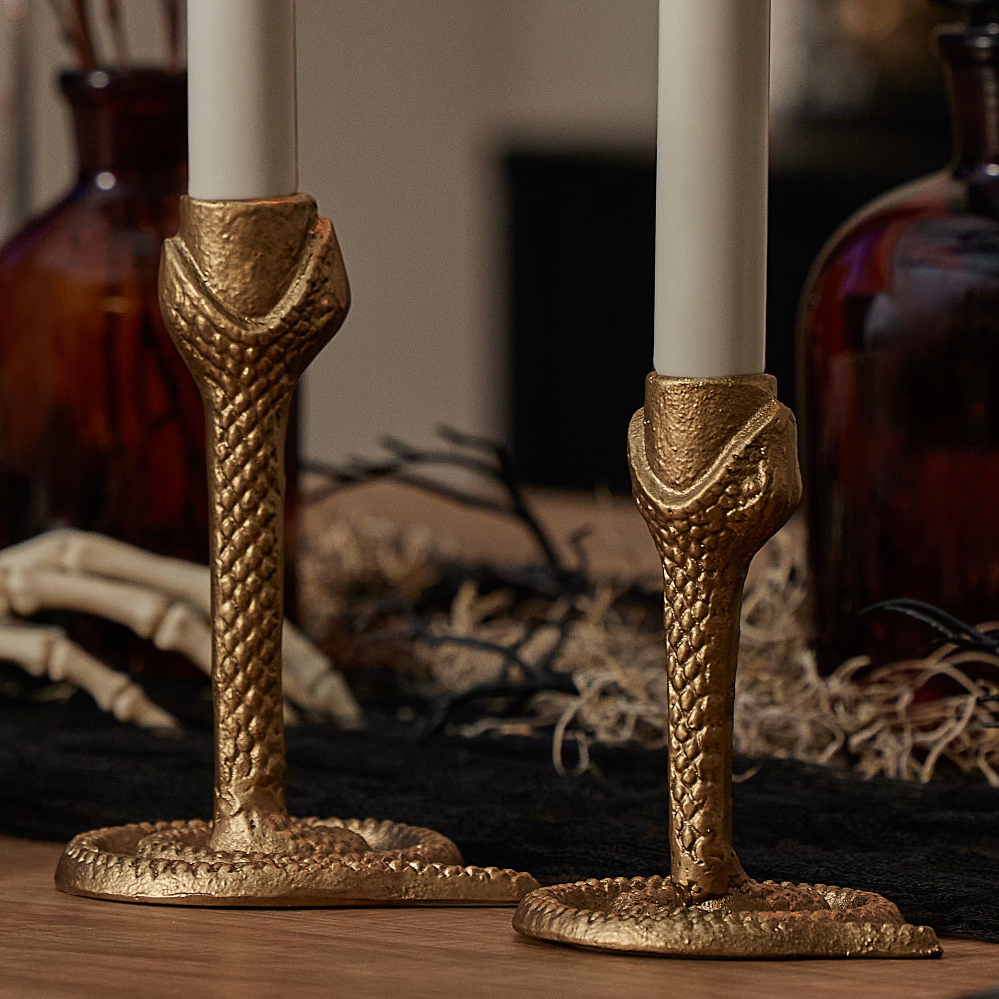 Luminara’s Brass Wrought Iron Snake Taper Holders look and feel luxurious with their understated yet ornate design that is perfect for subtlety amplifying your Halloween décor. Made using quality materials, these brass taper holders are available in two distinct sizes that look elegant when staggered across tabletops or fireplace mantles. Designed to look like a coiled serpent swallowing its prey, these tapers will effortlessly add enchantment and drama to your Halloween decorating.
