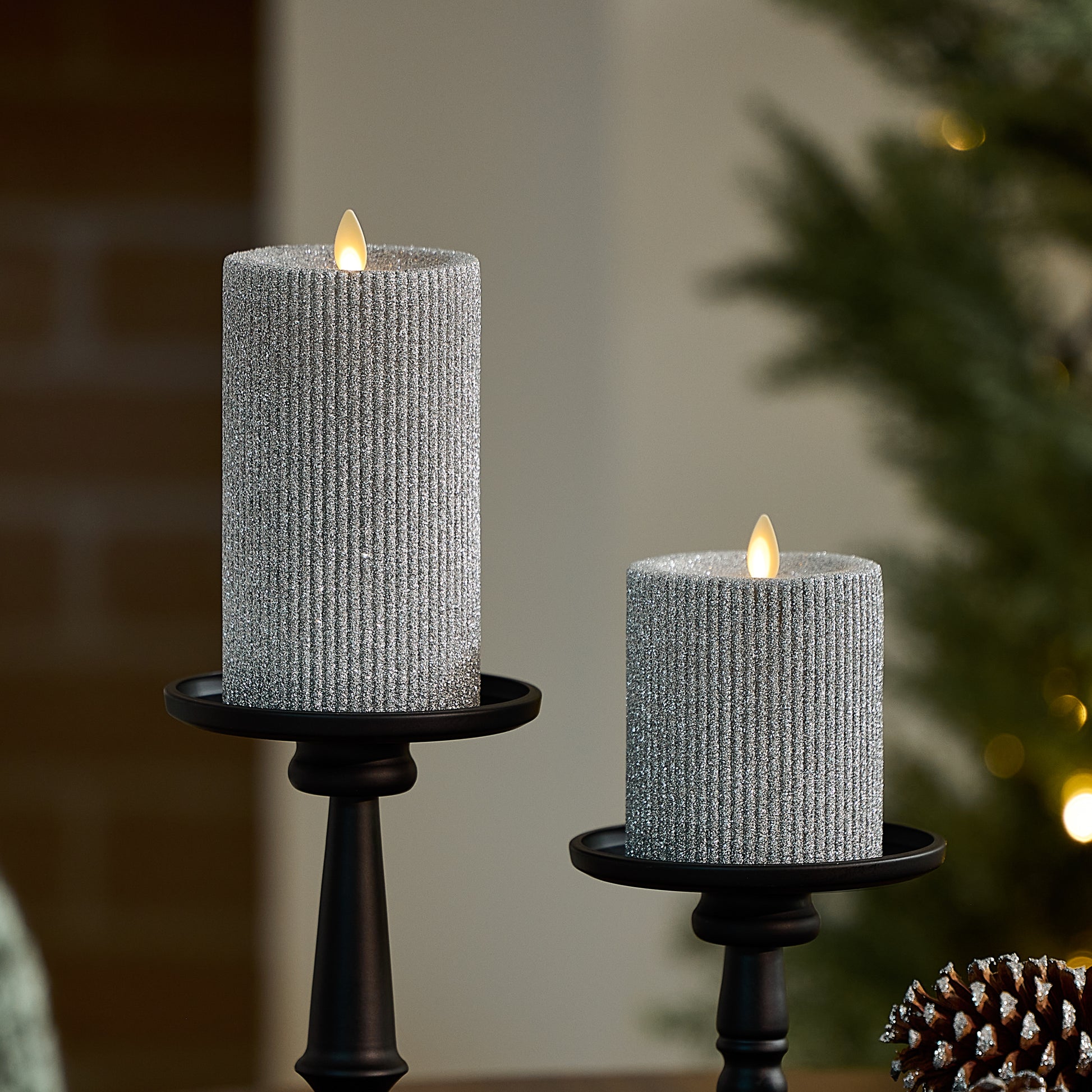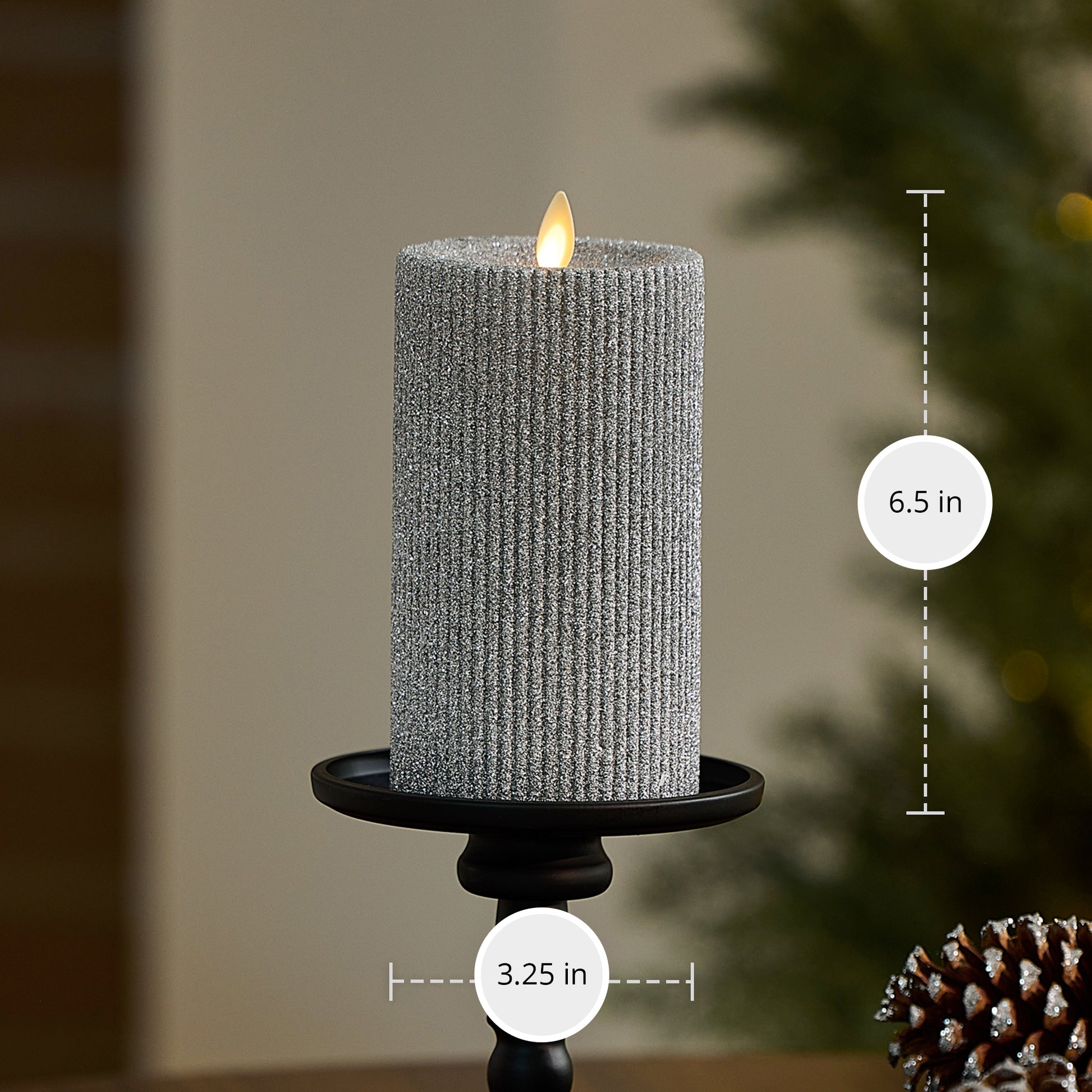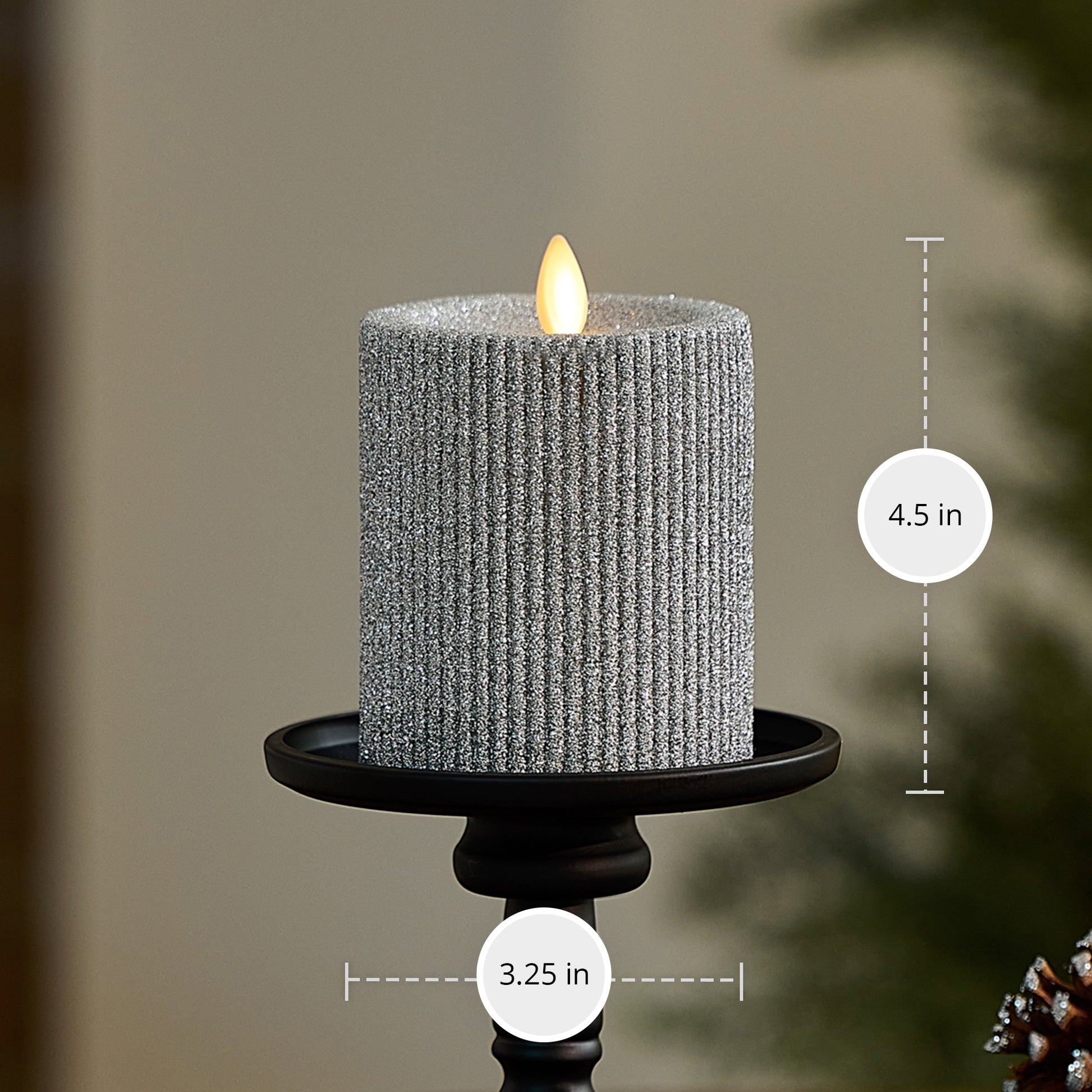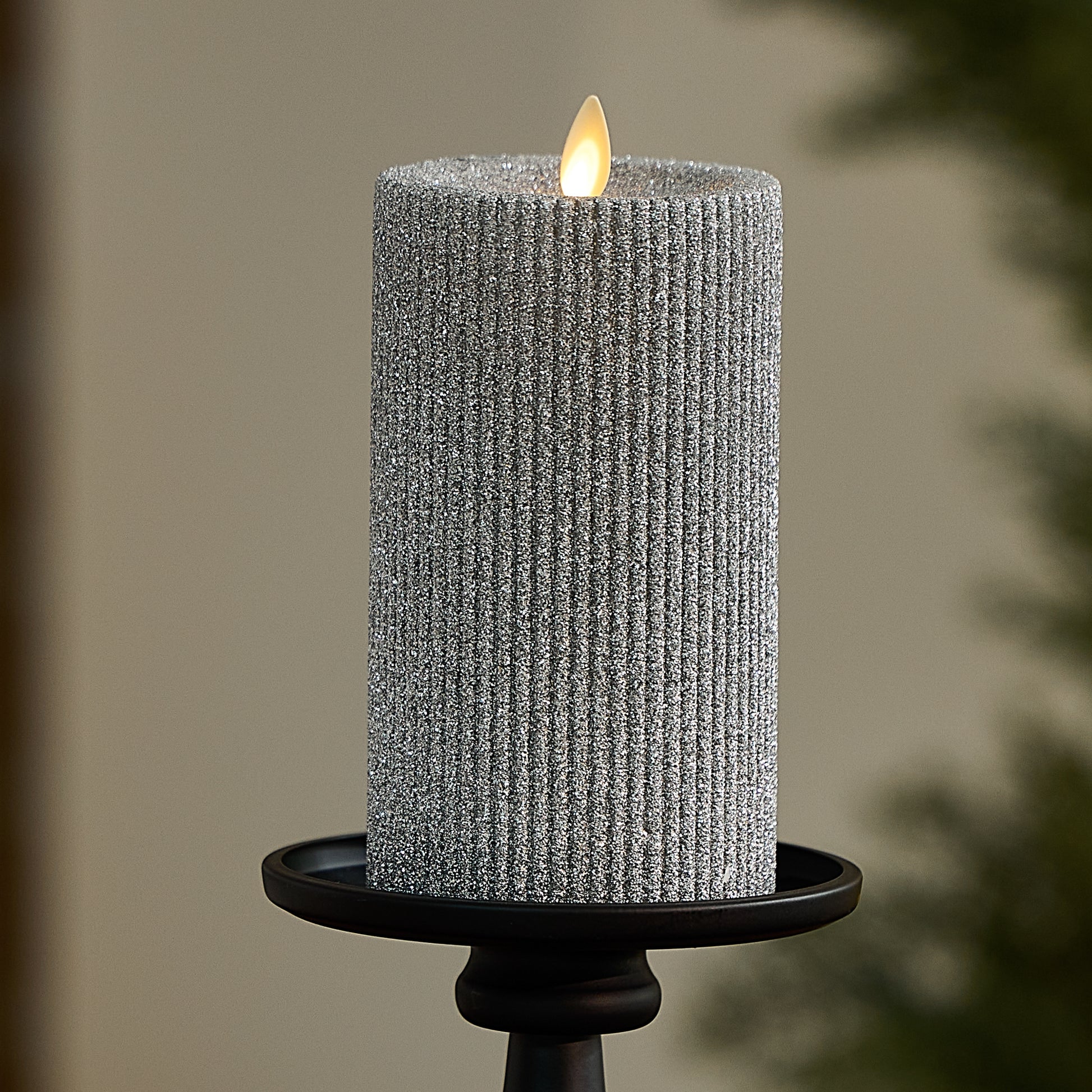 Brilliant Silver Glitter Ribbed Flameless Candle Pillar