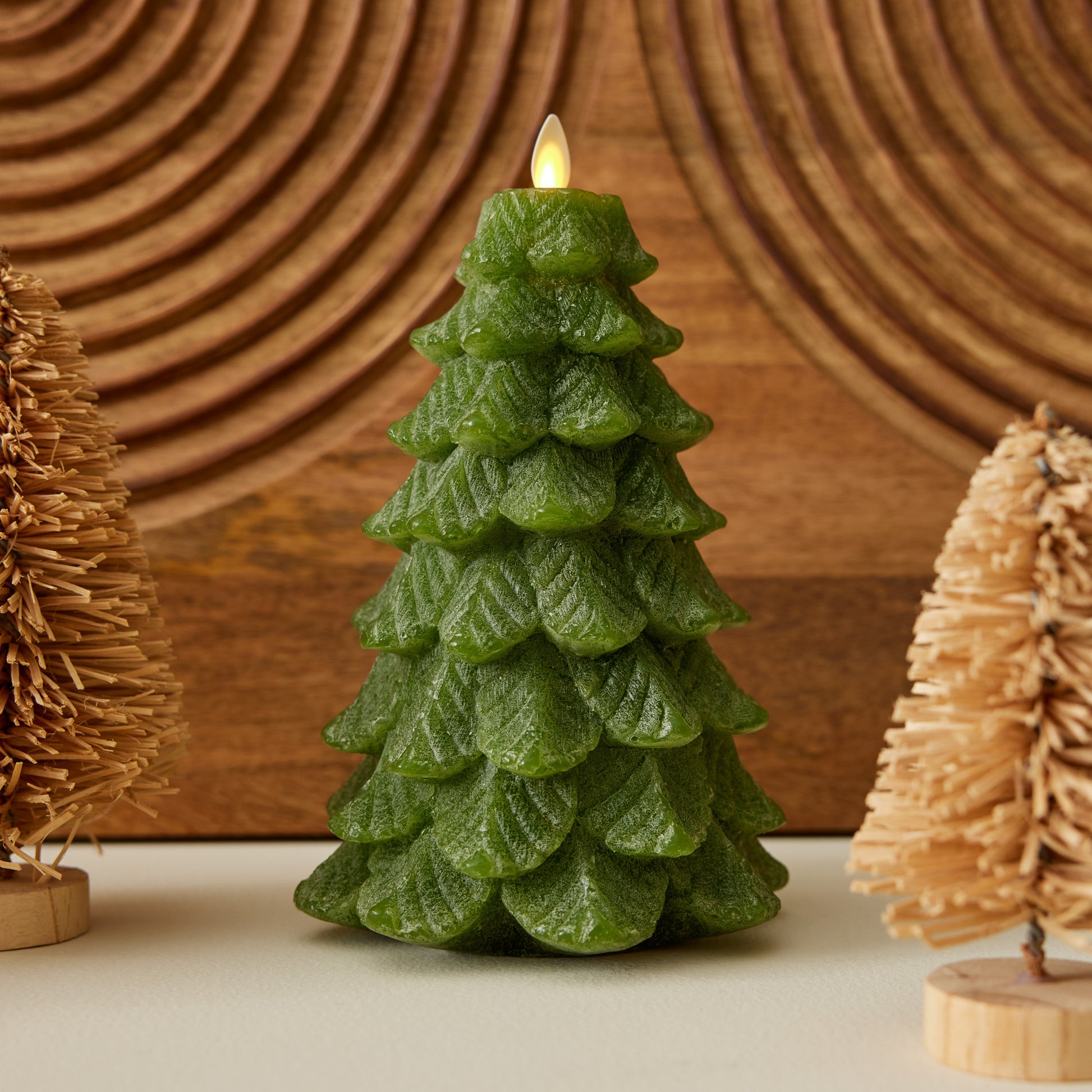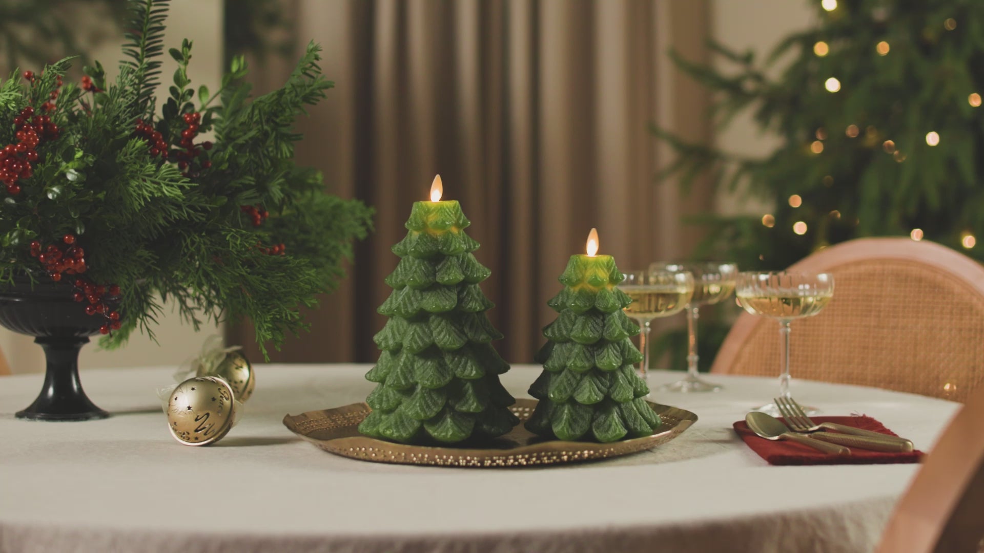 Nothing symbolizes the holiday season quite like the evergreen tree. Be merry and spread the Christmas cheer with our beautifully sculpted holiday tree flameless pillar. Our chalky finish combines beautiful texture with our classic and worry-free candlelit glow.