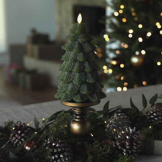 Nothing symbolizes the holiday season quite like the evergreen tree. Be merry and spread the Christmas cheer with our beautifully sculpted holiday tree flameless pillar. Our chalky finish combines beautiful texture with our classic and worry-free candlelit glow.