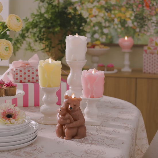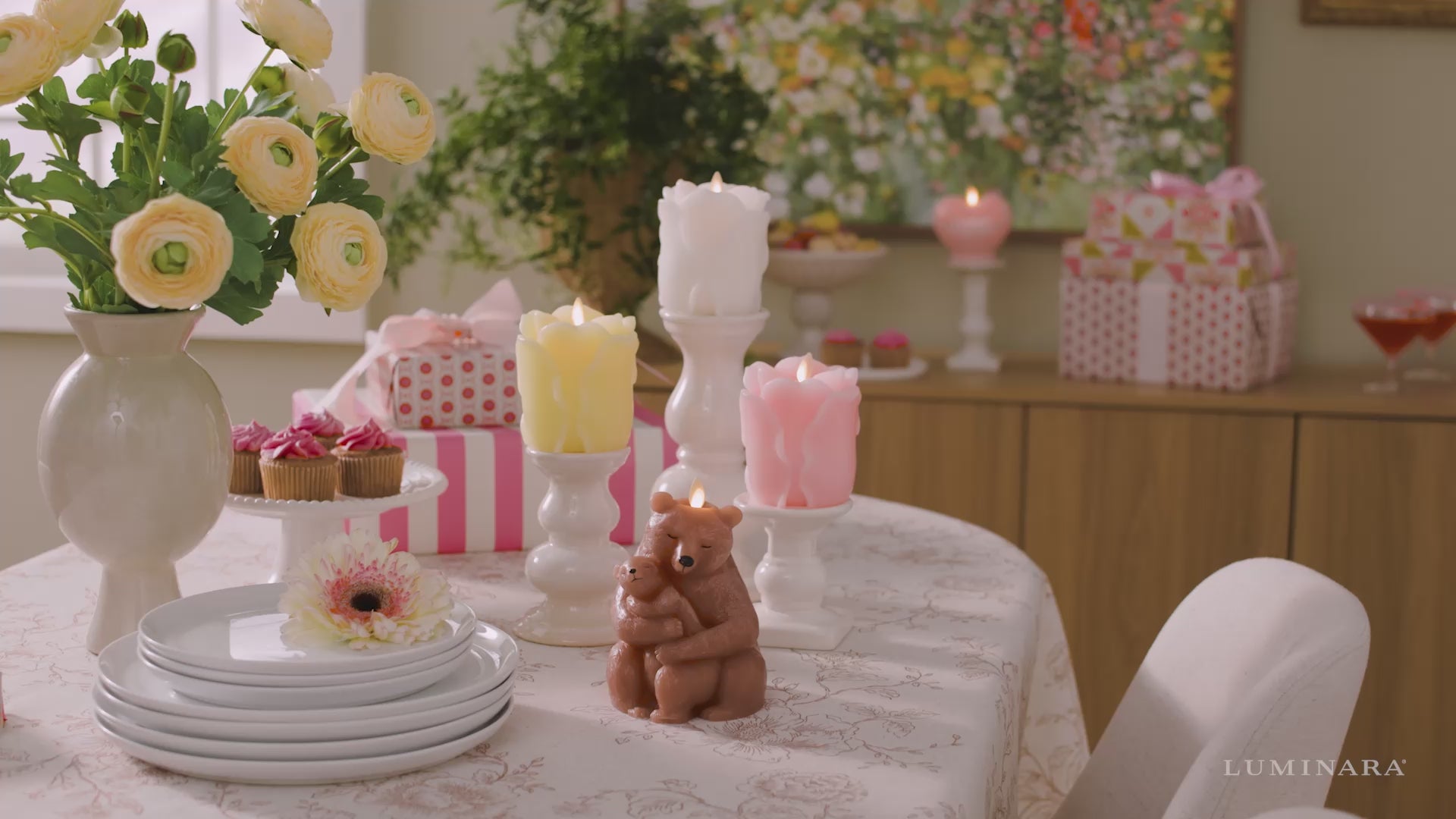Our Rose Bud flameless candle is hand-poured with genuine wax and is equipped with patented moving-flame technology that rivals the flicker and glow of traditional burning candles. Available in a Crystal Rose color, the soft pink wax helps showcase the elaborate folds and creases of rose petals that glow under worry-free candlelight. Luminara rose bud flameless candles make great gifts or they can also be grouped together in various available shades across tabletops or within glass vases to create a chic aesthetic during Mother’s Day celebrations.Technical Specifications