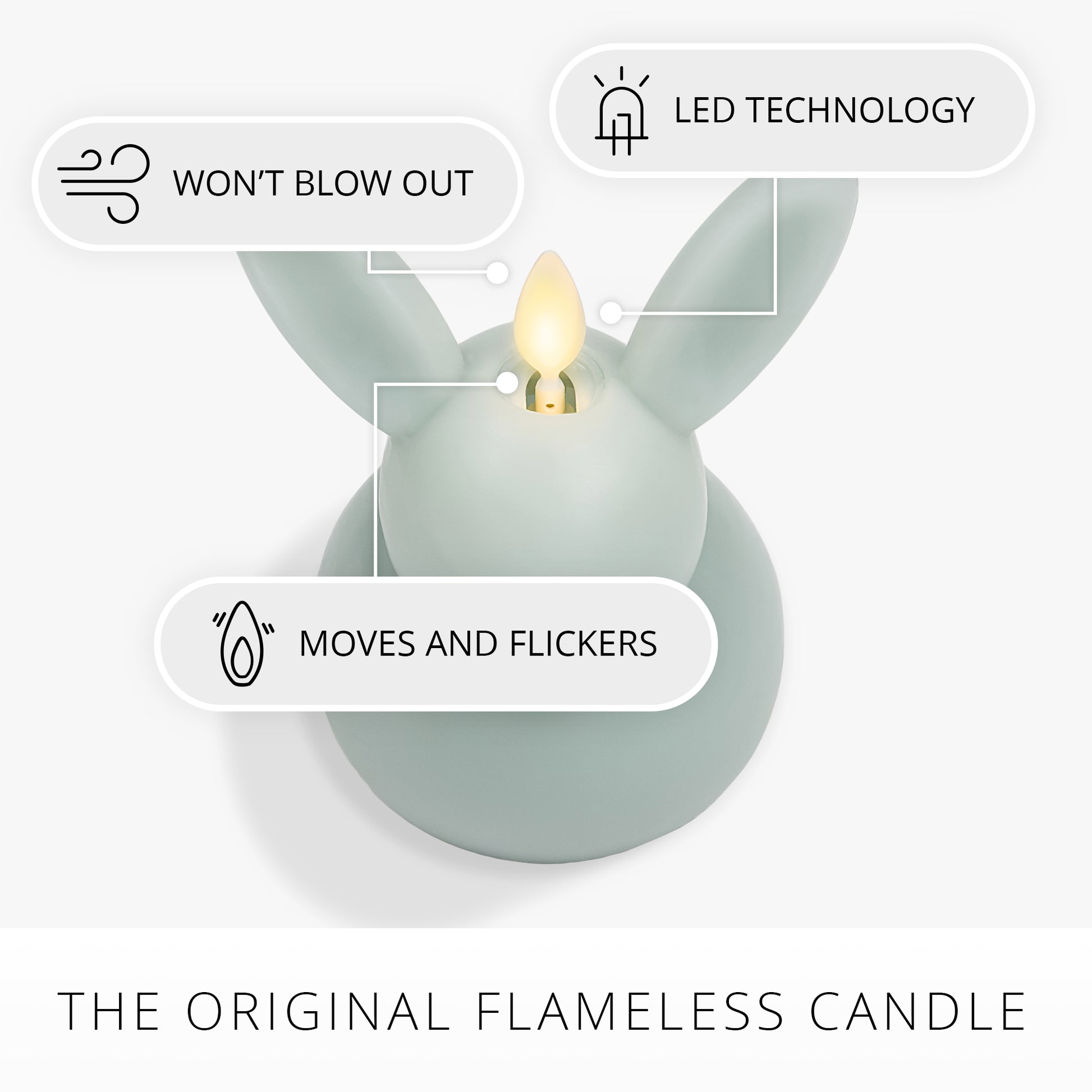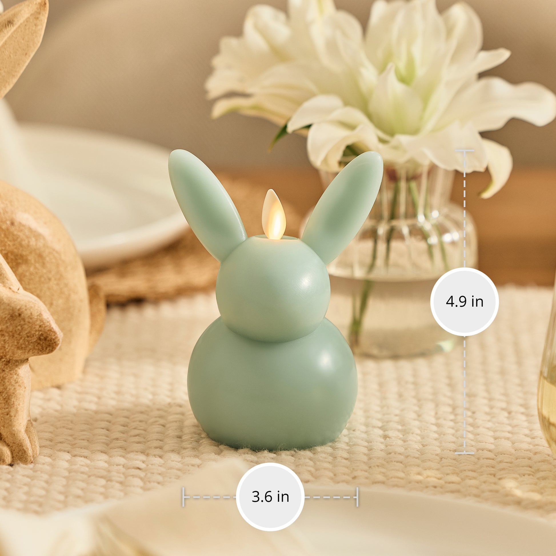 The Fresh Mint Small Bunny flameless candle is the perfect lighting accessory to spring into the Easter season. Cute and compact, this bunny-shaped flameless candle is a modern take on a timeless Easter symbol. Poured in a light yet vibrant cool-green tone with a smooth wax finish, this flameless candle looks elegant and contemporary. Decorate mantle pieces or style Easter Sunday tablescapes with Luminara Small Bunny flameless candles to create a delightfully elevated candlelight effect that is both completely harmless and festive.Technical Specifications