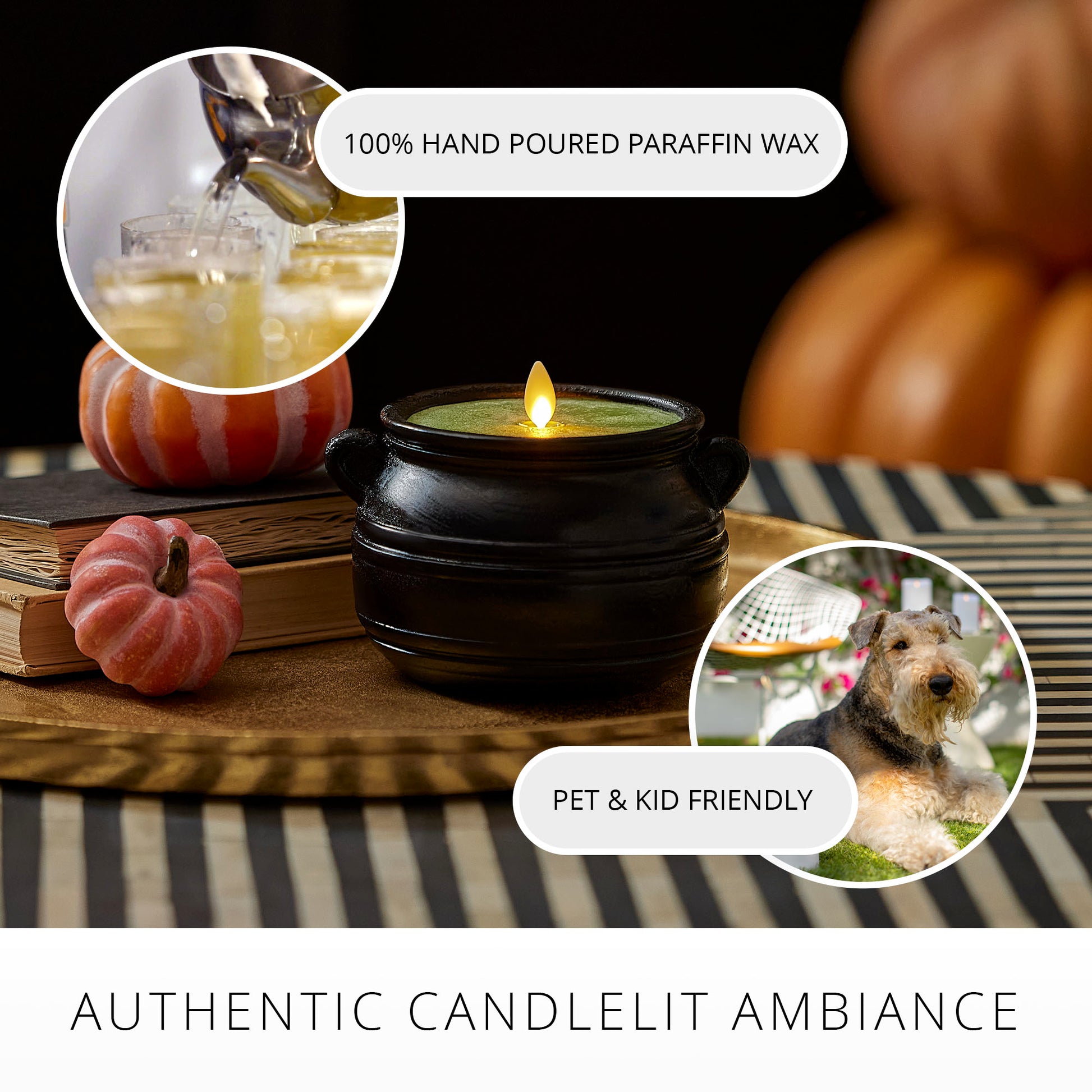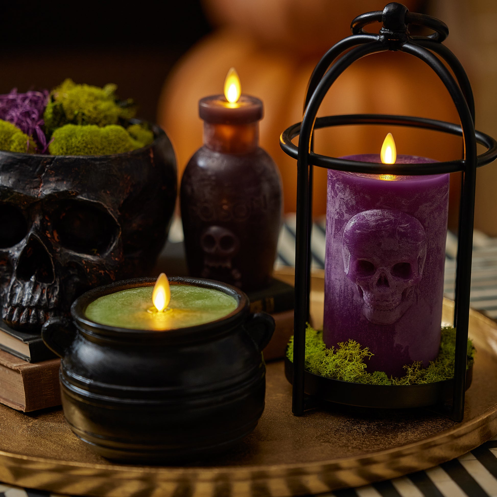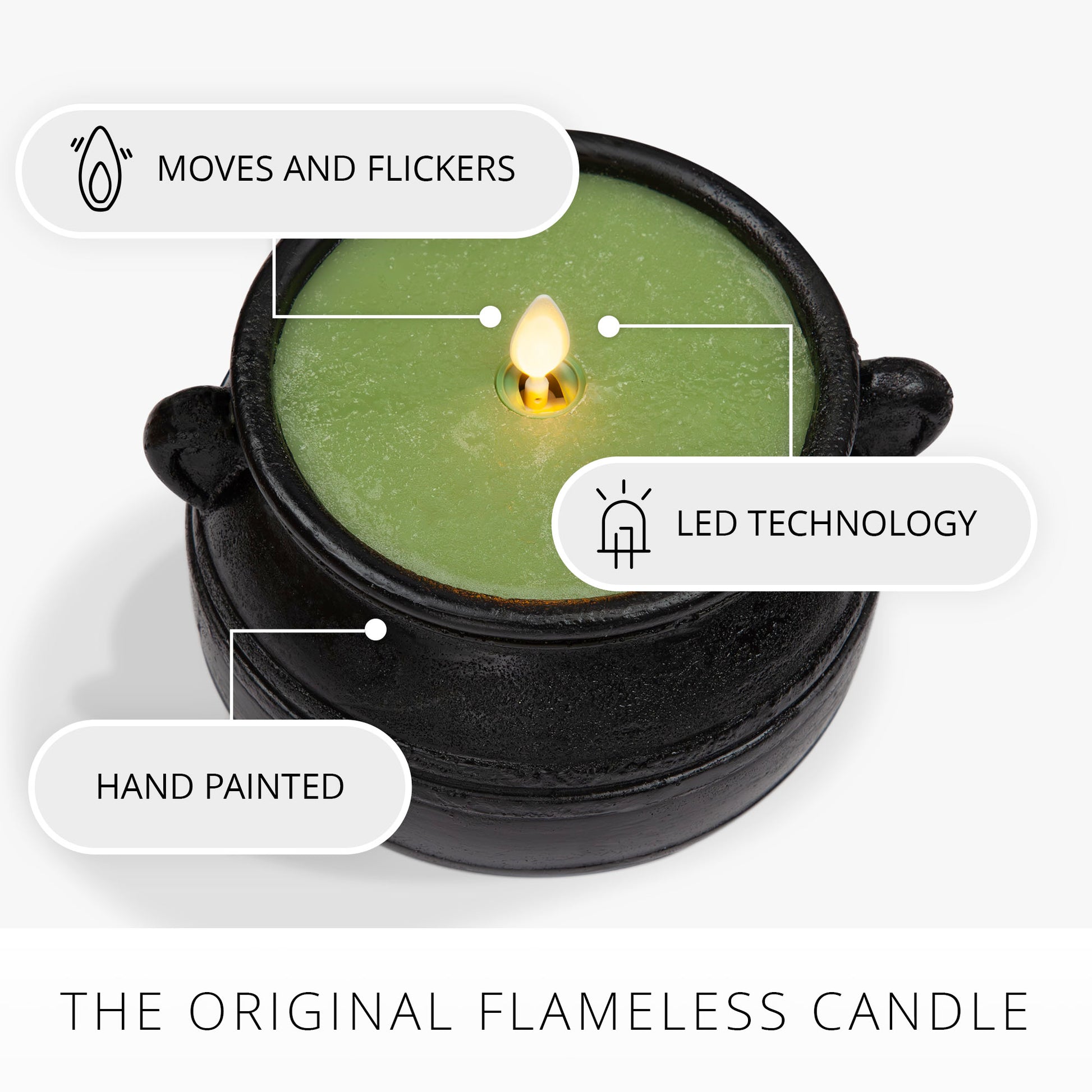 Luminara’s Green Potion Cauldron is the perfect accessory to light up the Halloween spirit in any space. Made of premium hand poured wax, each flameless candle Cauldron is beautifully hand painted to resemble a large metal pot brewing up a creepy batch of toxic green potion. A delightfully festive piece on its own, the Cauldron flameless candle also pairs well with the Luminara Chalky Poison Bottles (available in two distinct colors), so an eerier Halloween apothecary theme for tablescape centerpieces or across shelves and mantlepieces.Technical Specifications