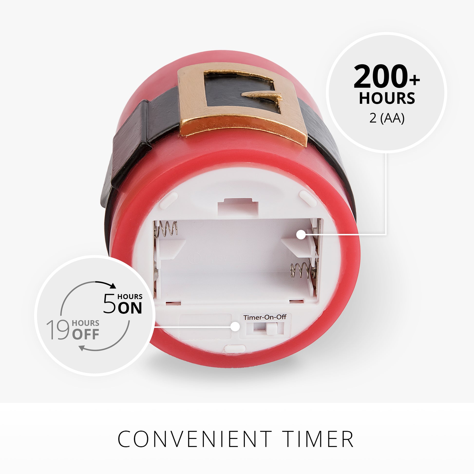 Effortlessly capture the magic of the holiday season with our Santa Belt Pillar. This flameless candle pillar joyfully flickers with realistic moving-flame technology and is hand-crafted in a bright holiday red color wax that is adorn with a traditional Santa belt and big, golden buckle. Place this pillar on a candle holder for a convenient and merry pop of holiday cheer with completely worry-free candlelight during all your holiday season gatherings.Technical Specifications