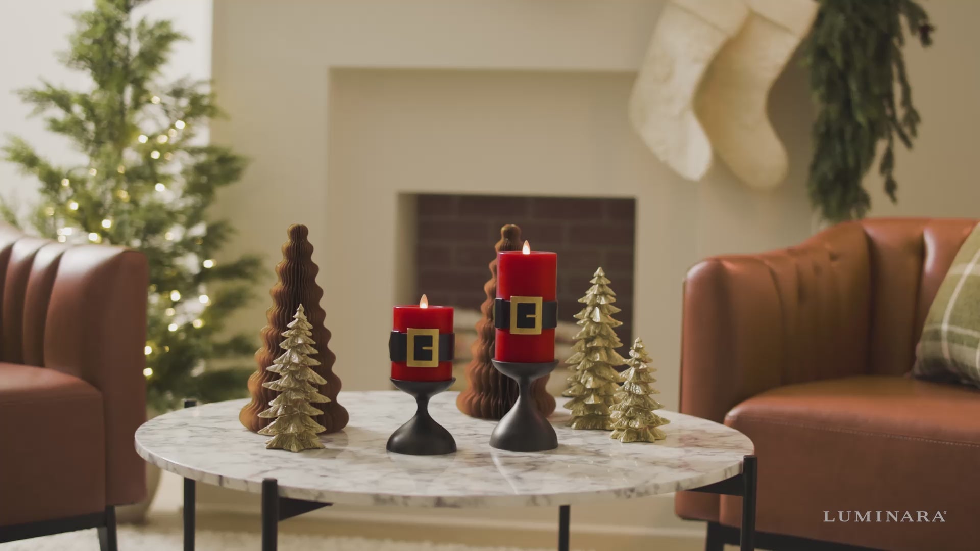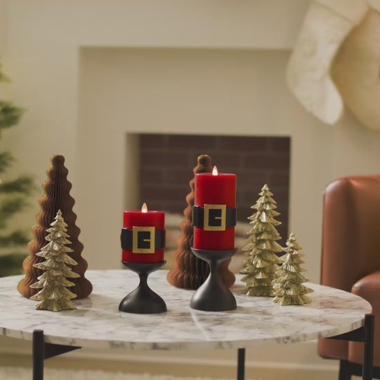 Holiday Red Santa Belt Flameless Candle Pillar