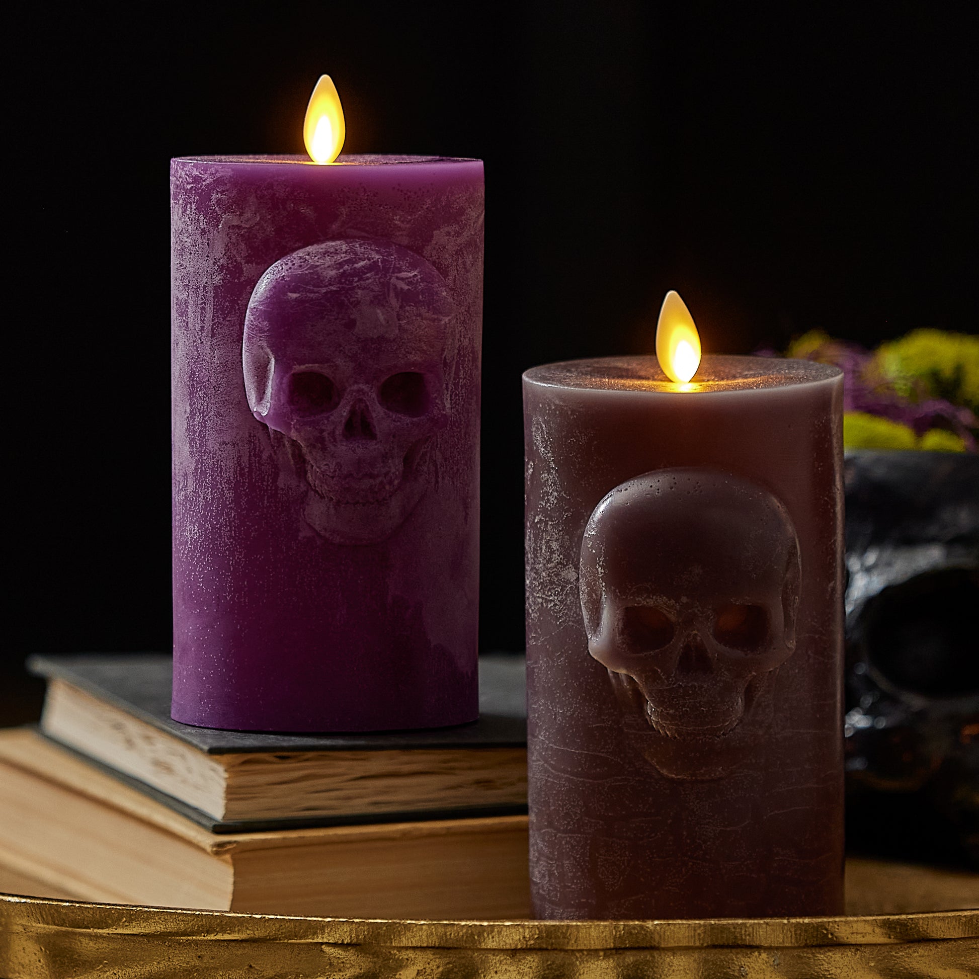 Imperial Purple Chalky Flameless Candle Skull Pillar