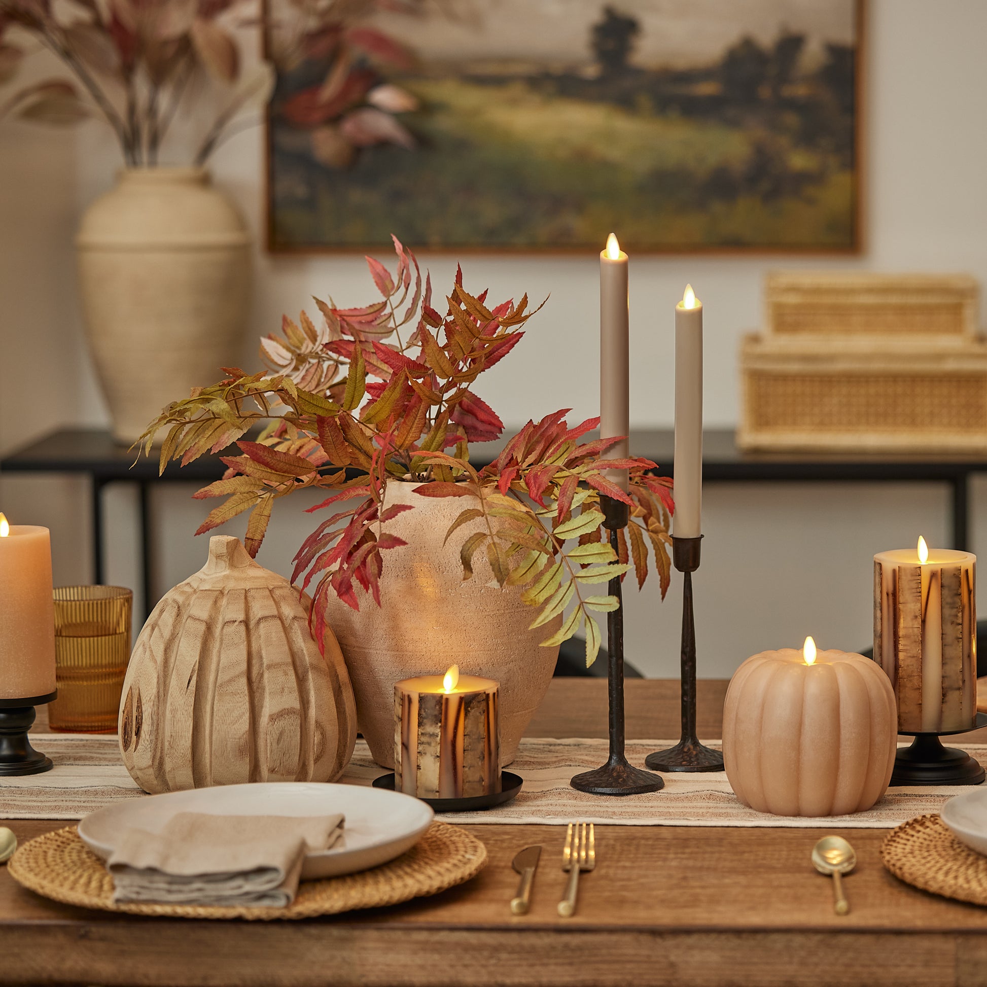 Cast a warm and inviting glow across your seasonal fall décor with our Irish Cream Chalky Linen Pillars. Hand poured in two distinct sizes, the crisp linen texture of these pillars looks stunning and their ashen neutral tone and texture make them versatile to use with a variety of fall design aesthetics. These Irish Cream Pillars look elegant and classy on their own, but pair especially well with other Luminara Harvest Collect items, such as the Irish Cream Tapers or Ivory Birch & Twigs Embedded Pillars.Technical Specifications