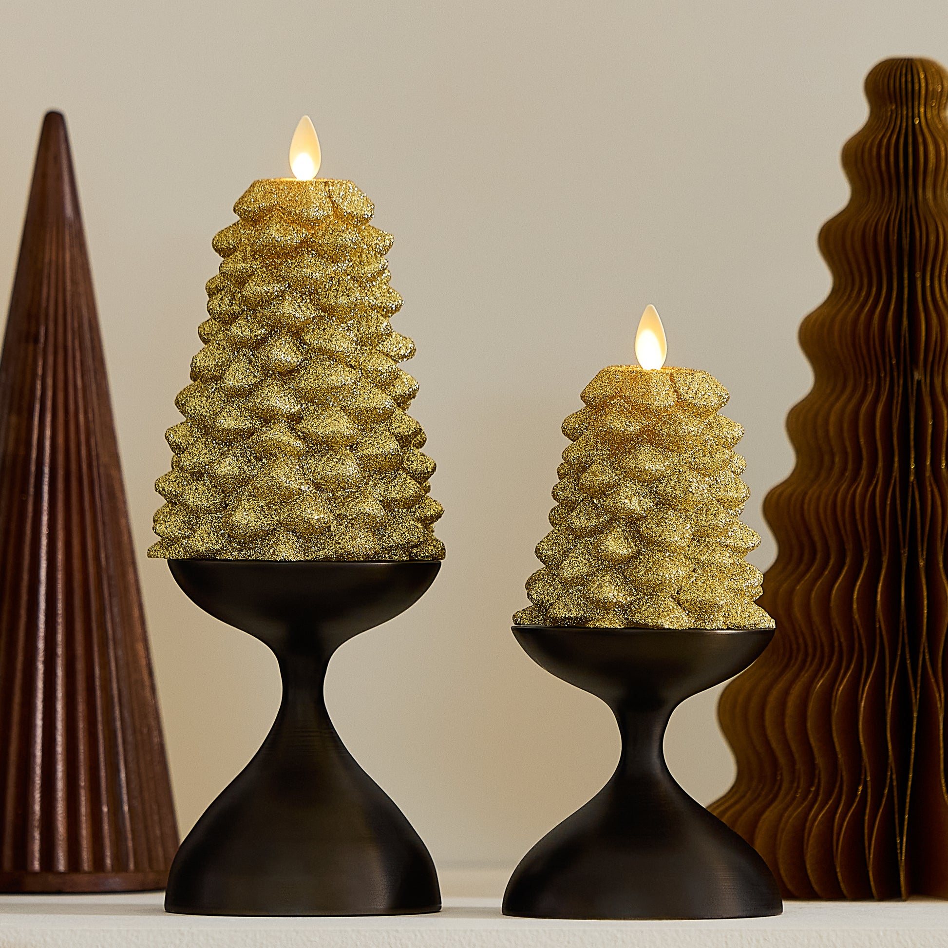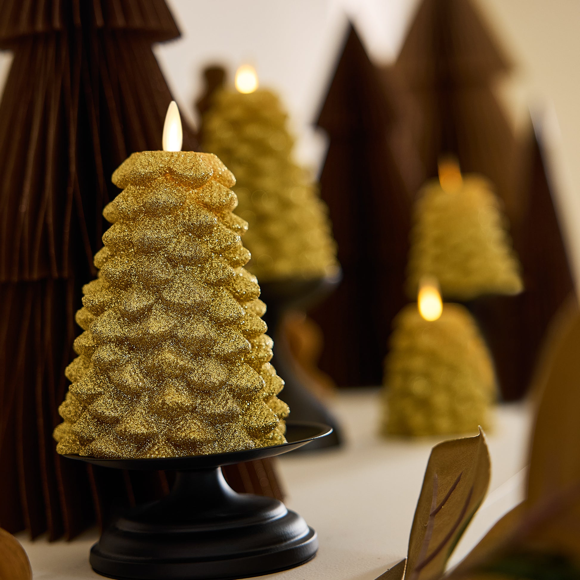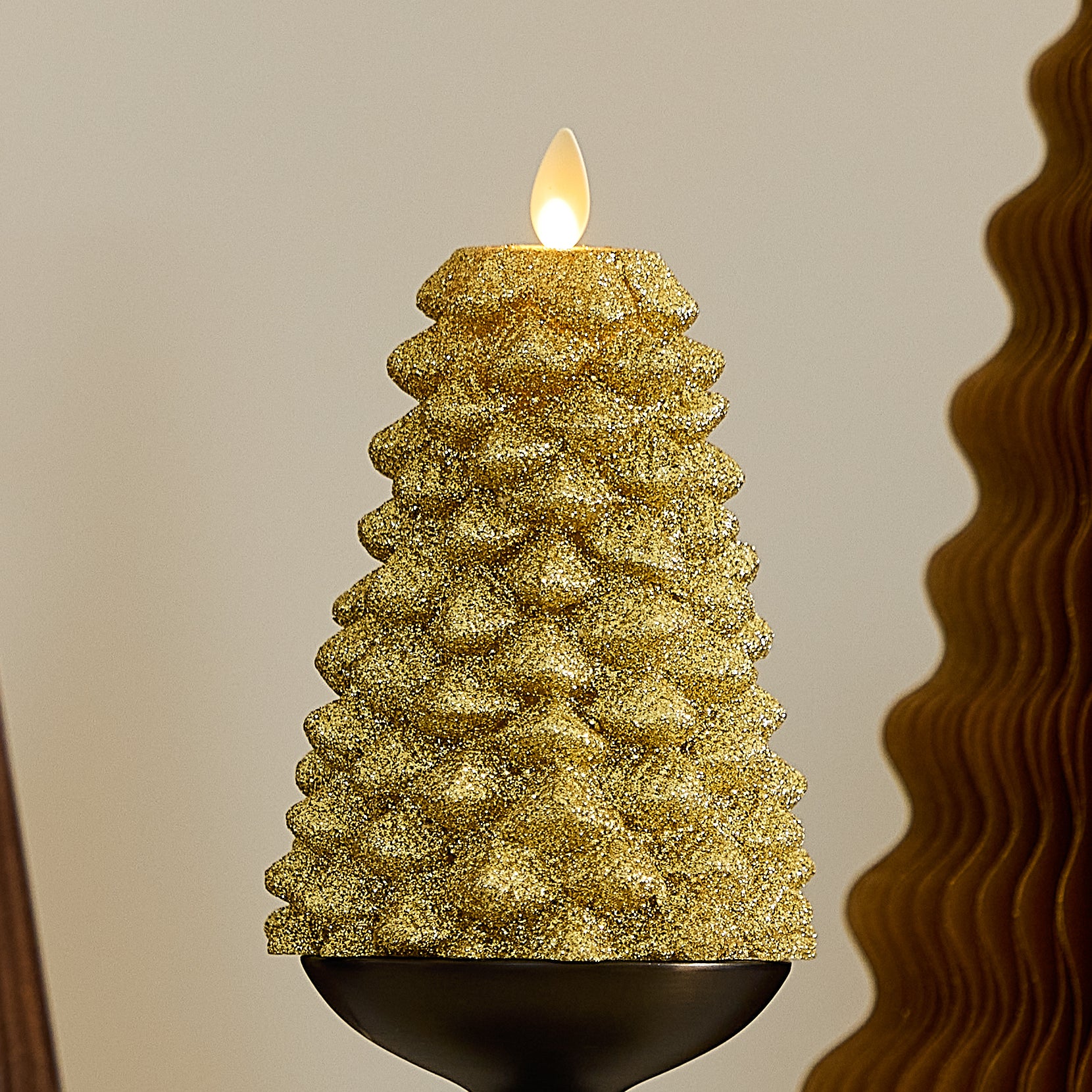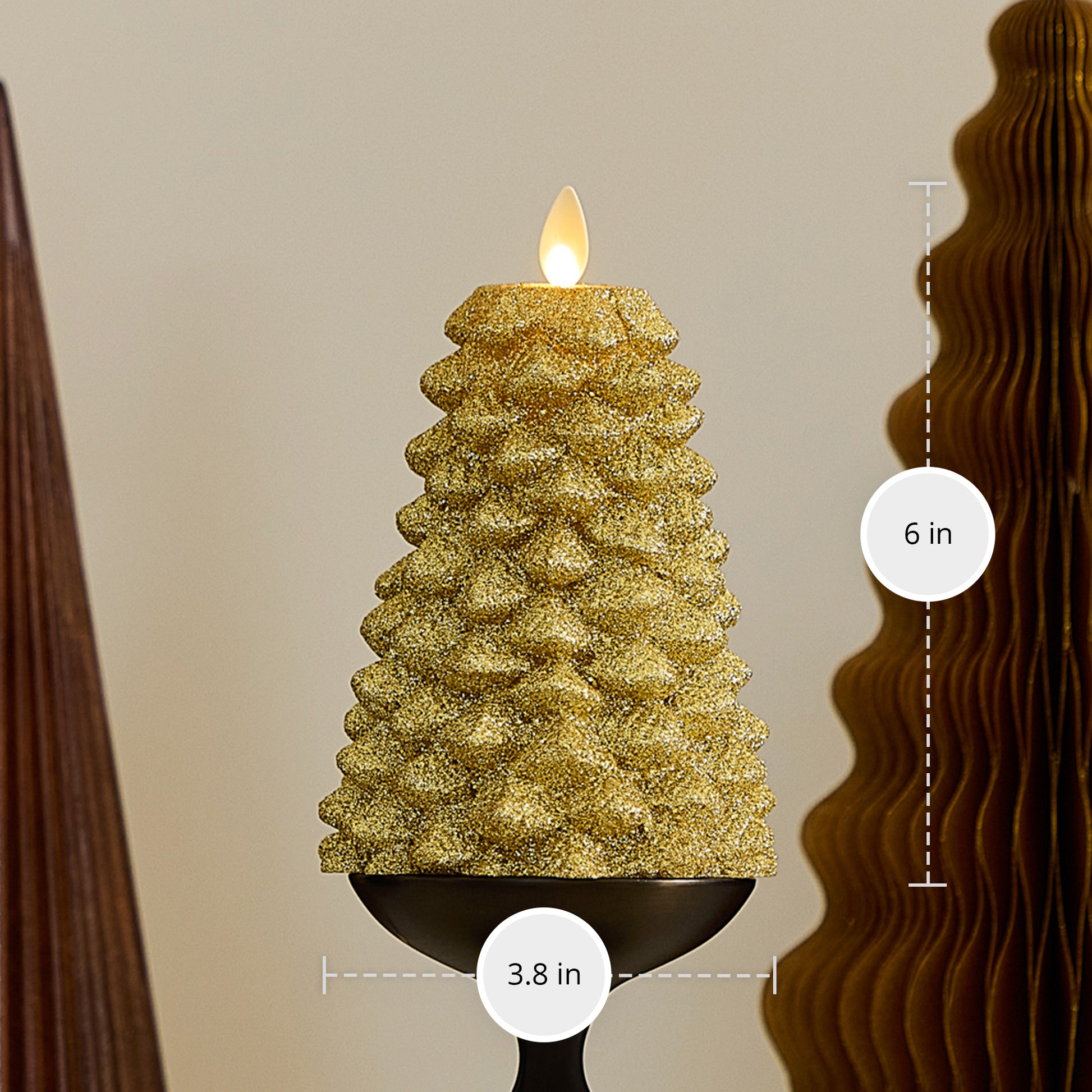 Rich Gold Glitter Flameless Candle North Tree