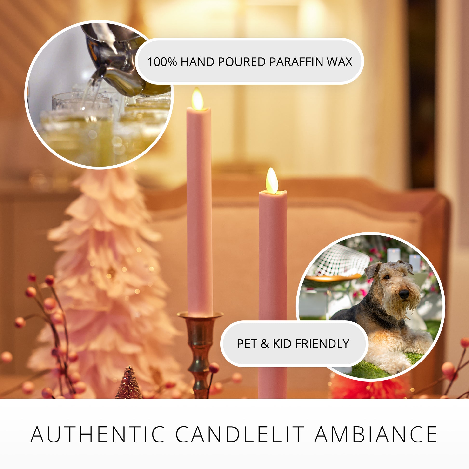 Add a touch of warmth and elegance to your holiday decor with our Rose Tan Flameless Tapers. This set of two tapers showcases a beautiful rose tan color, exuding a sense of refined beauty and sophistication. With their realistic flickering flames and safe flameless design, these tapers provide a cozy and inviting glow, setting the perfect mood for intimate gatherings and joyful celebrations.