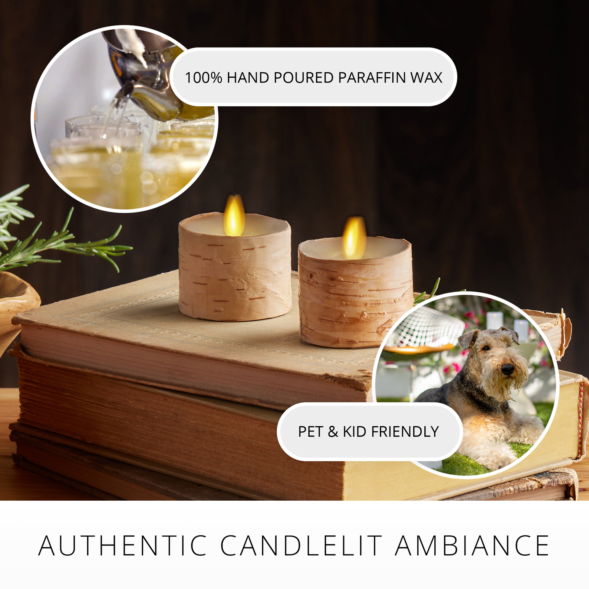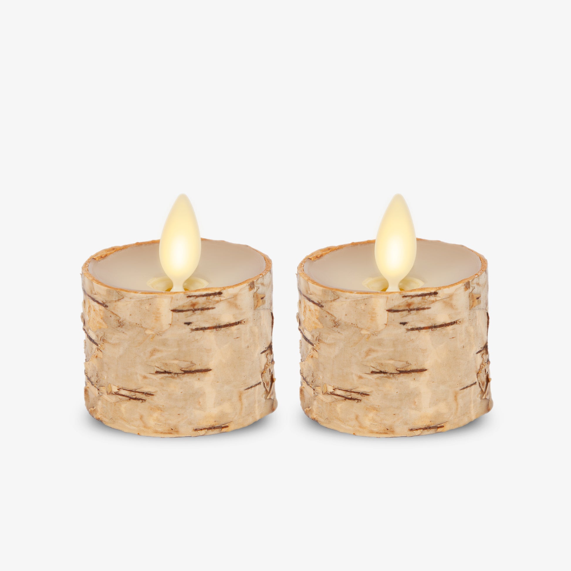 Real Birch Flameless Candle Tealights - Recessed Top - Set of 2