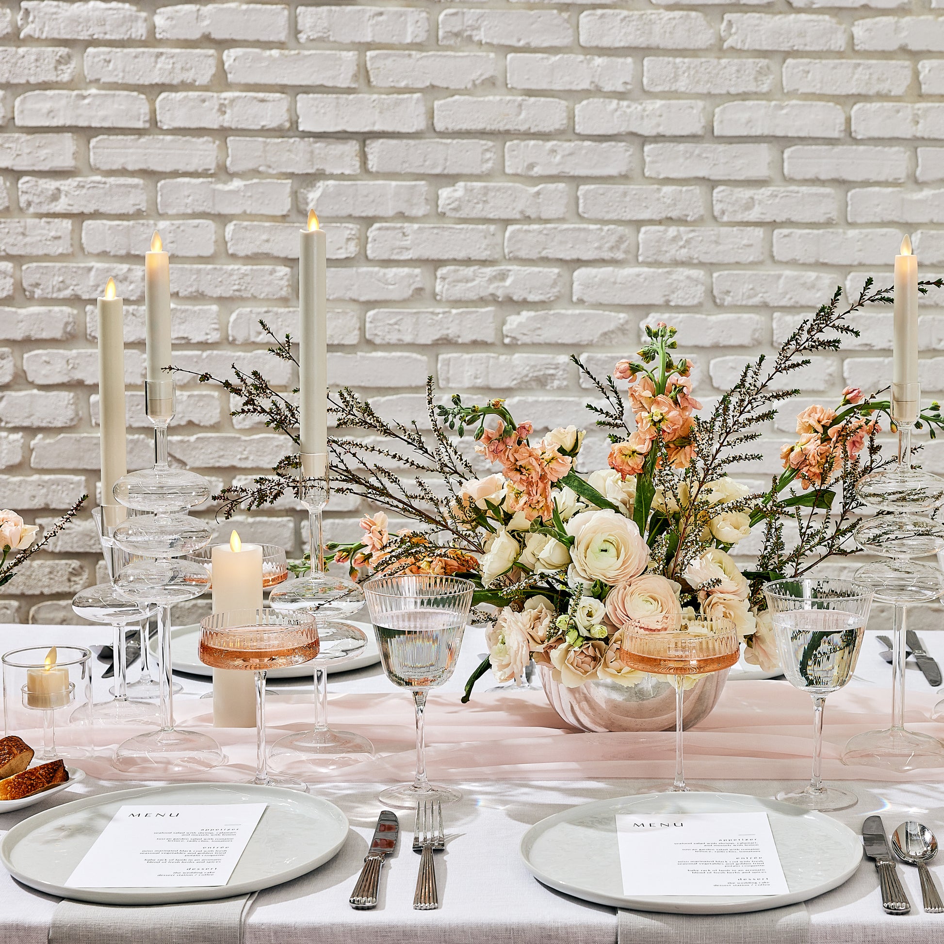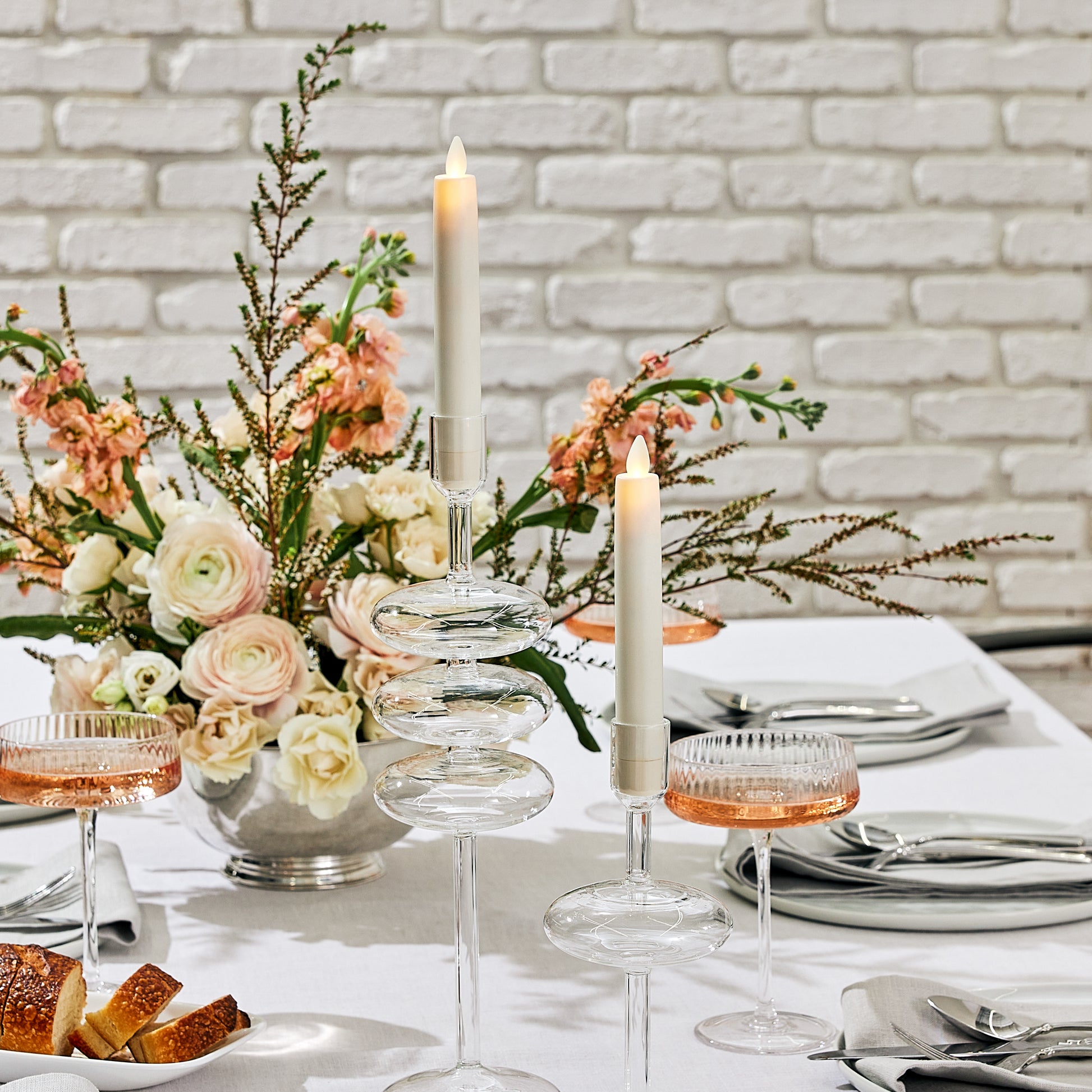 Keep it simple with a Set of Luminara's 2 White Flameless Candles. White or silver candleholders create a snowy appearance for winter celebrations. When you switch them on, these candles glow with our realistic moving-flame technology. The dancing light creates a warm, cheerful centerpiece. Display these candles at weddings, parties and baby showers to set the tone, or make these pillars a permanent display in your house.