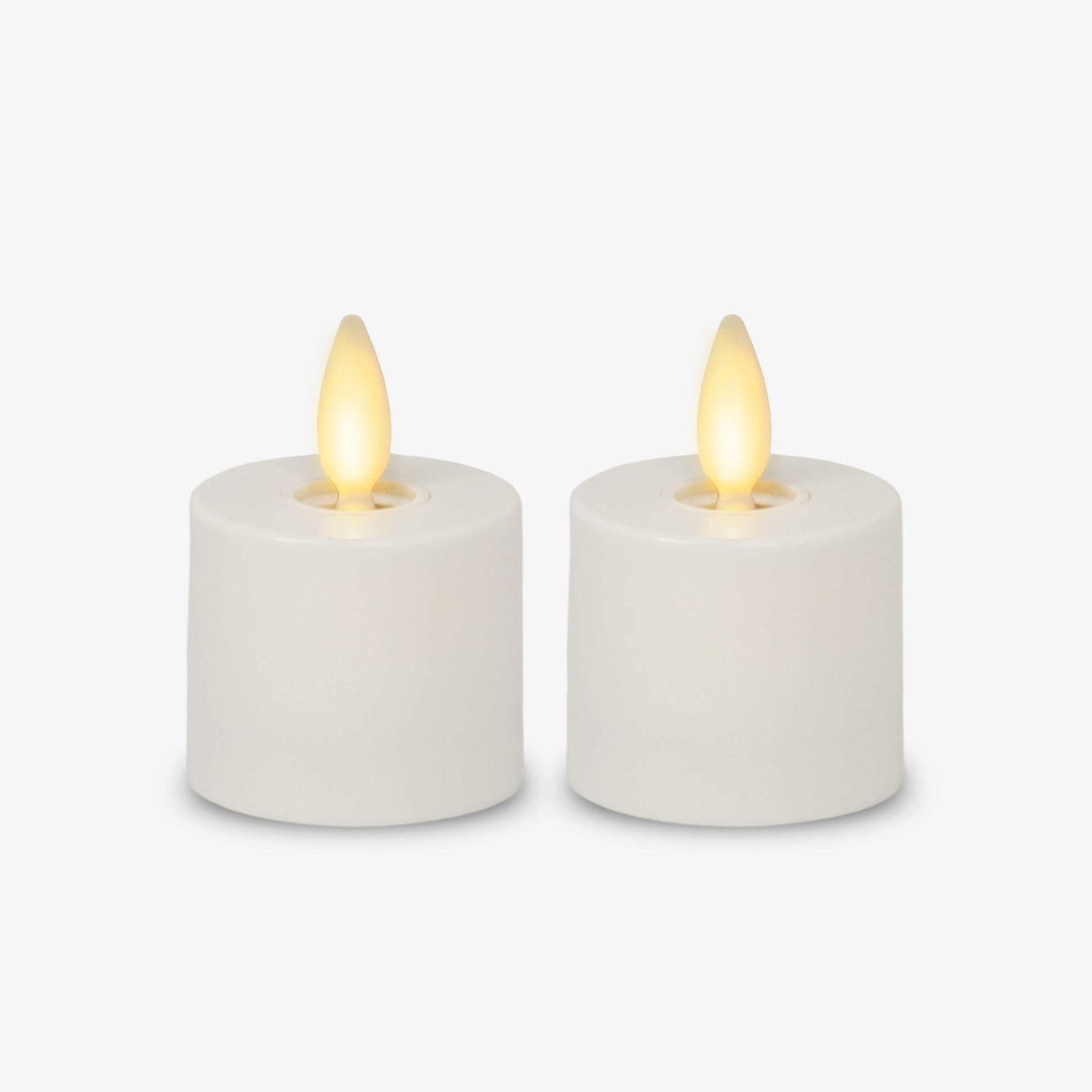 Looking for a white alternative of our best-selling tealights? Add a delicate touch to your home décor with our Set of 2 White Flameless Candle Tealights. The patented moving flame casts a flickering glow against the high-quality white plastic.