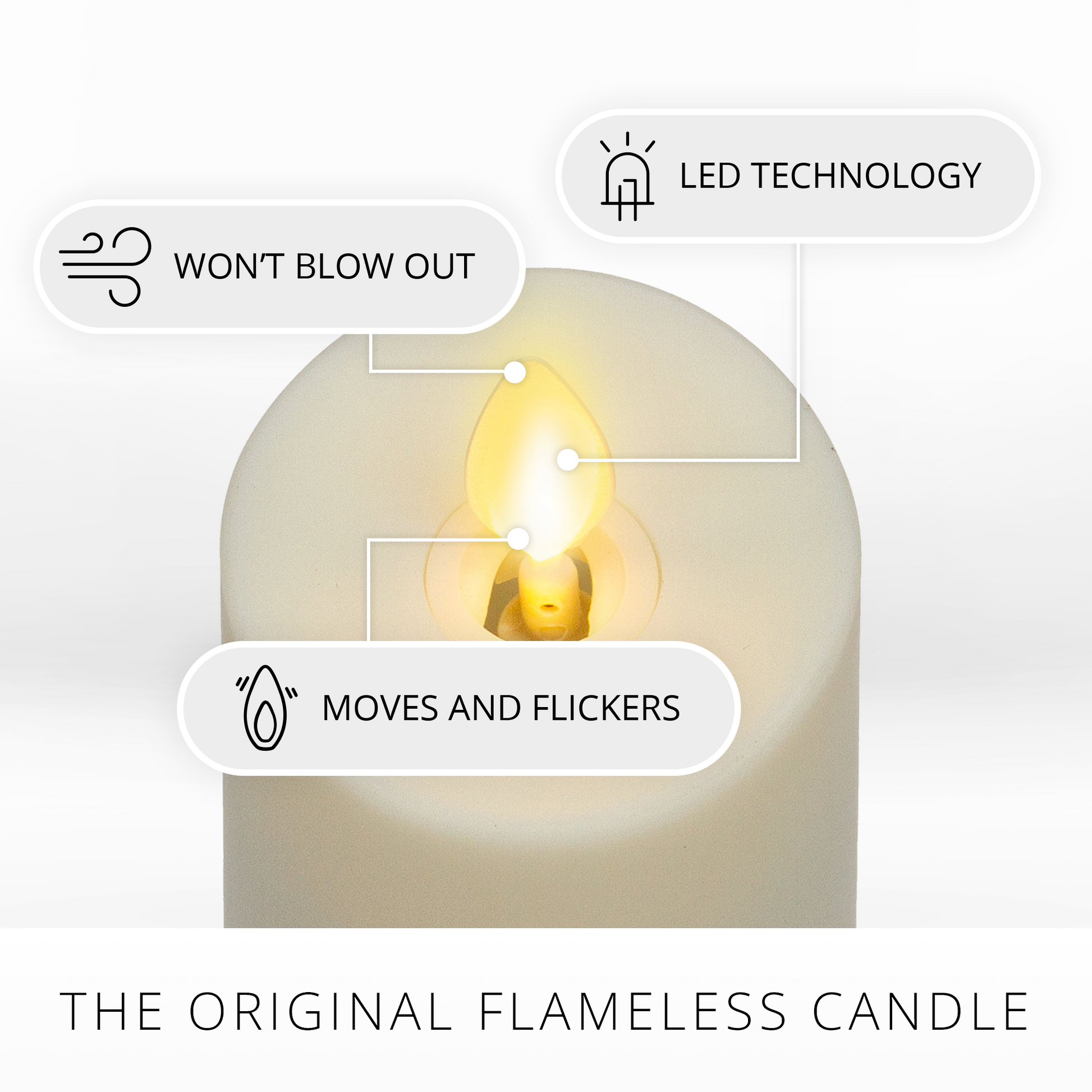 Our LED light shoots diagonally to the center of the flame piece creating an effect that convincingly reproduces the look of a traditional burning candle.