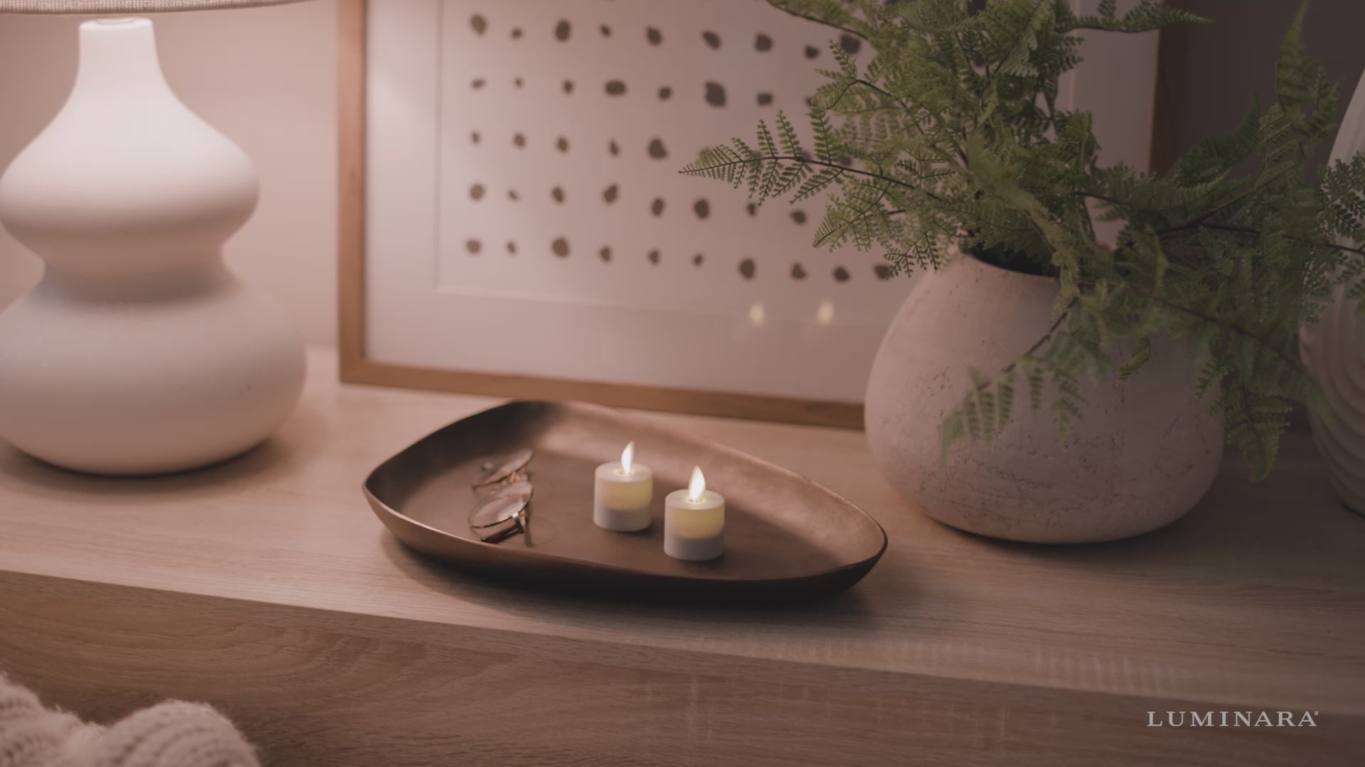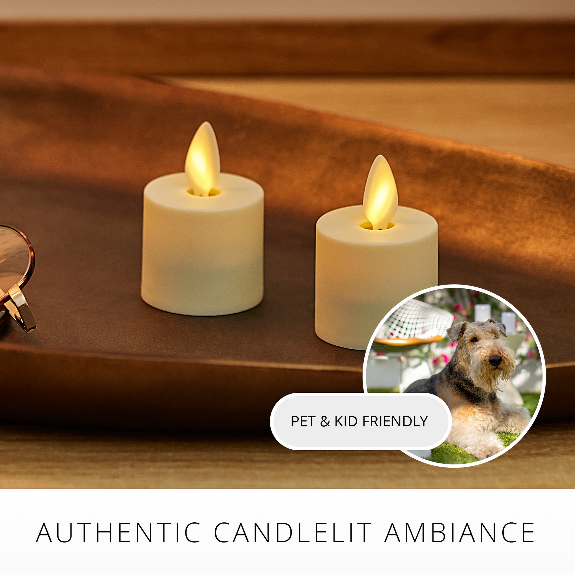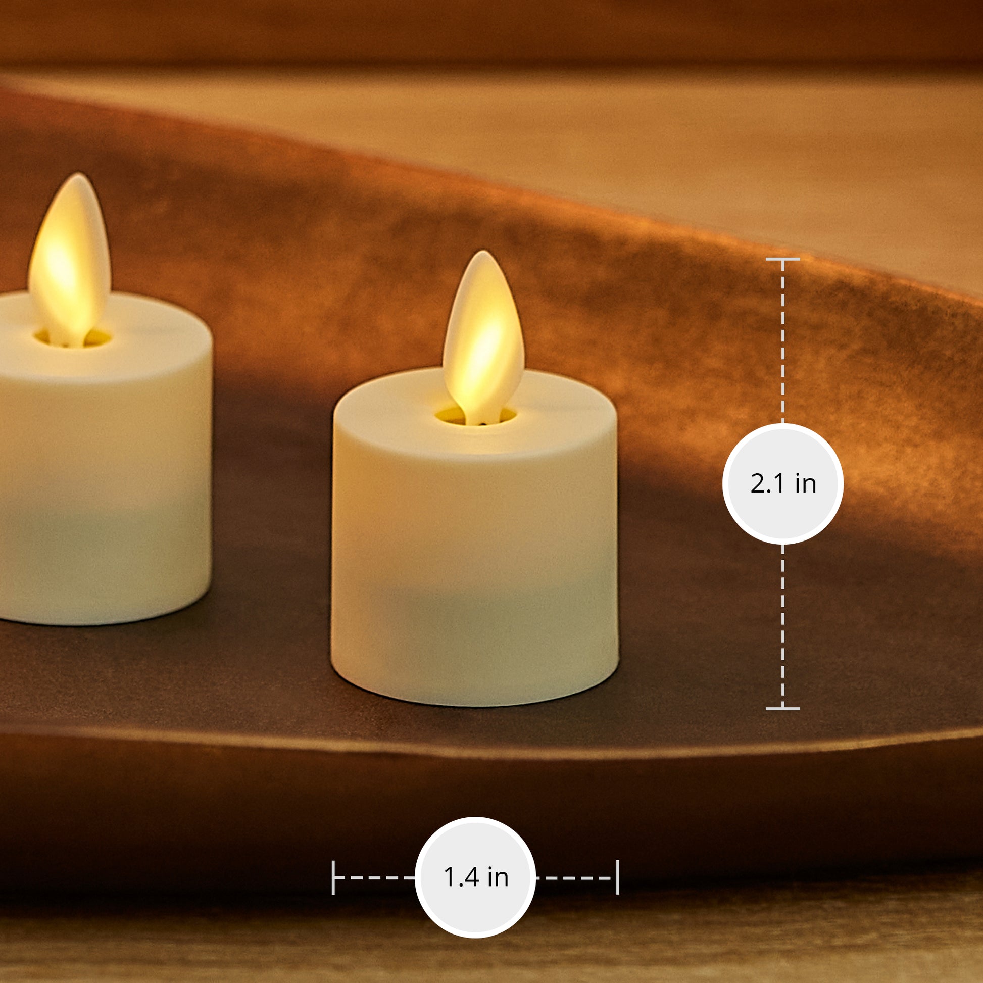 Elevate your decor with this upgraded Set of 2 Ivory Flameless Candle Tealights, featuring extended battery life of 100 Hours. Luminara's patented moving flame creates a realistic flicker against the high-quality plastic for a soft, glowing ambiance. Perfect for votives or glass jars, these tealights offer all the charm of traditional candles with none of the hassle or risk.Technical Specifications