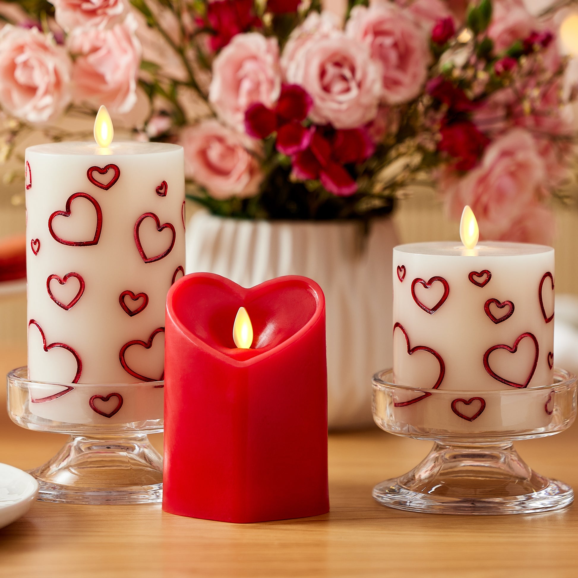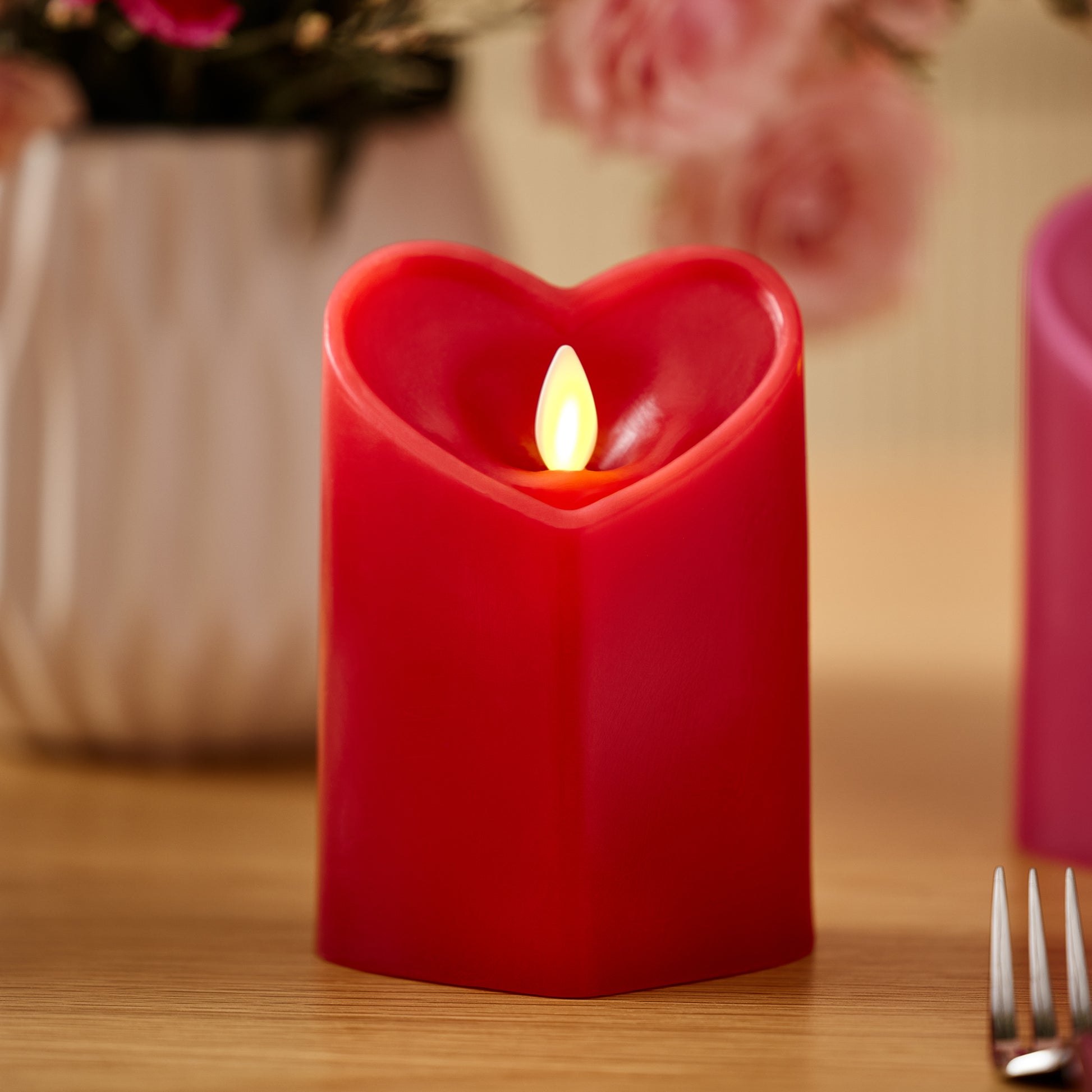 True Red Flameless Candle Heart Pillar