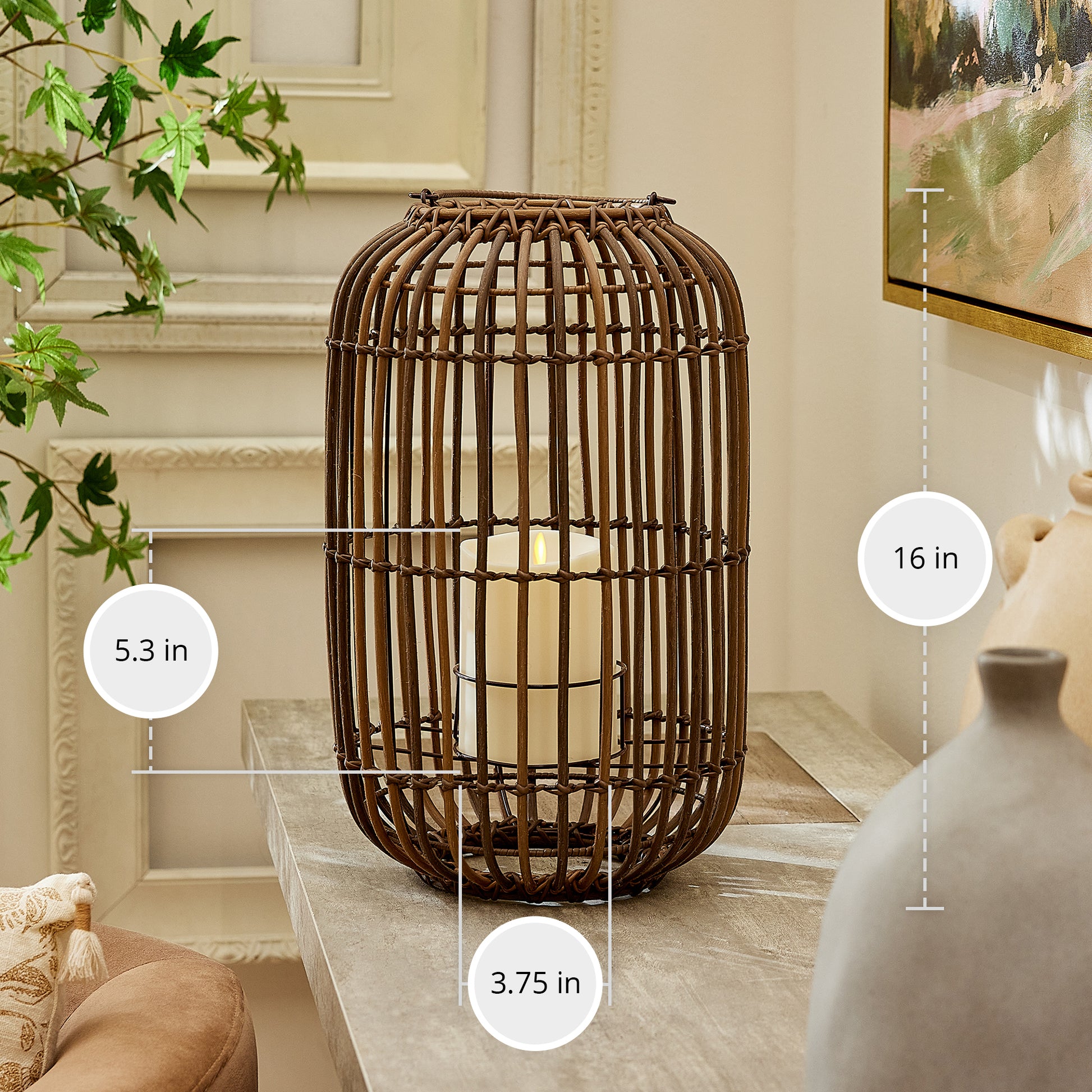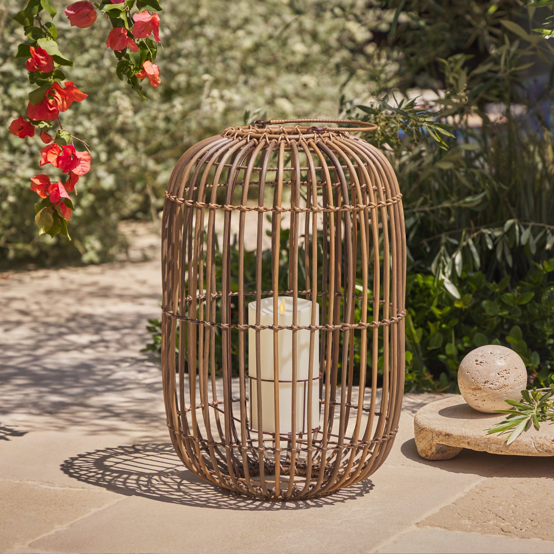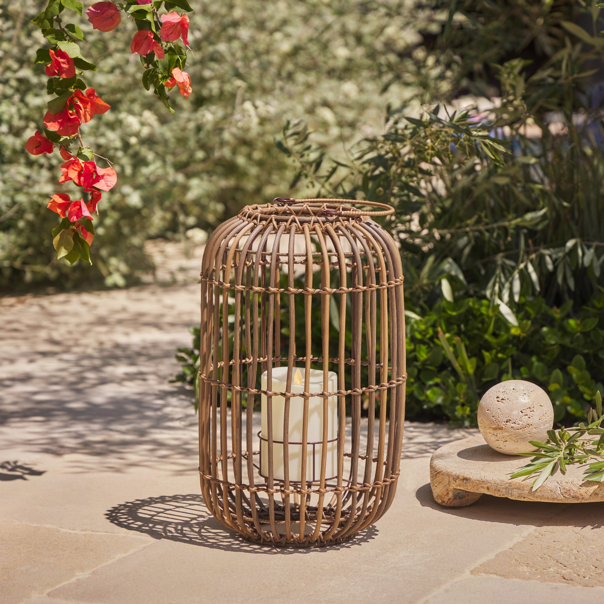 Artisan made to capture a rustic yet refined aesthetic, the Rattan Inspired Lanterns by Luminara beautifully filter light and can be used both indoors or outdoors. Made with a solid stainless-steel frame and HDPE resin, the lanterns are crafted to resemble weathered brown wicker for a causal, natural look and feature a classic weather-resistant Luminara flameless candle pillar that will cast worry-free, warm ambient lighting all season long.