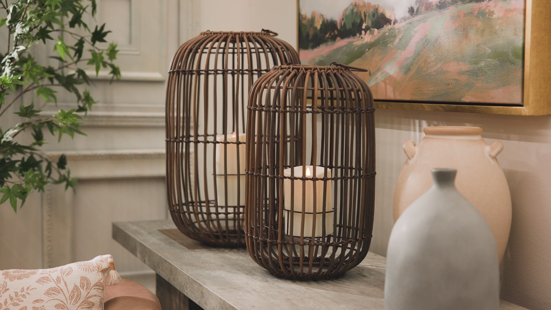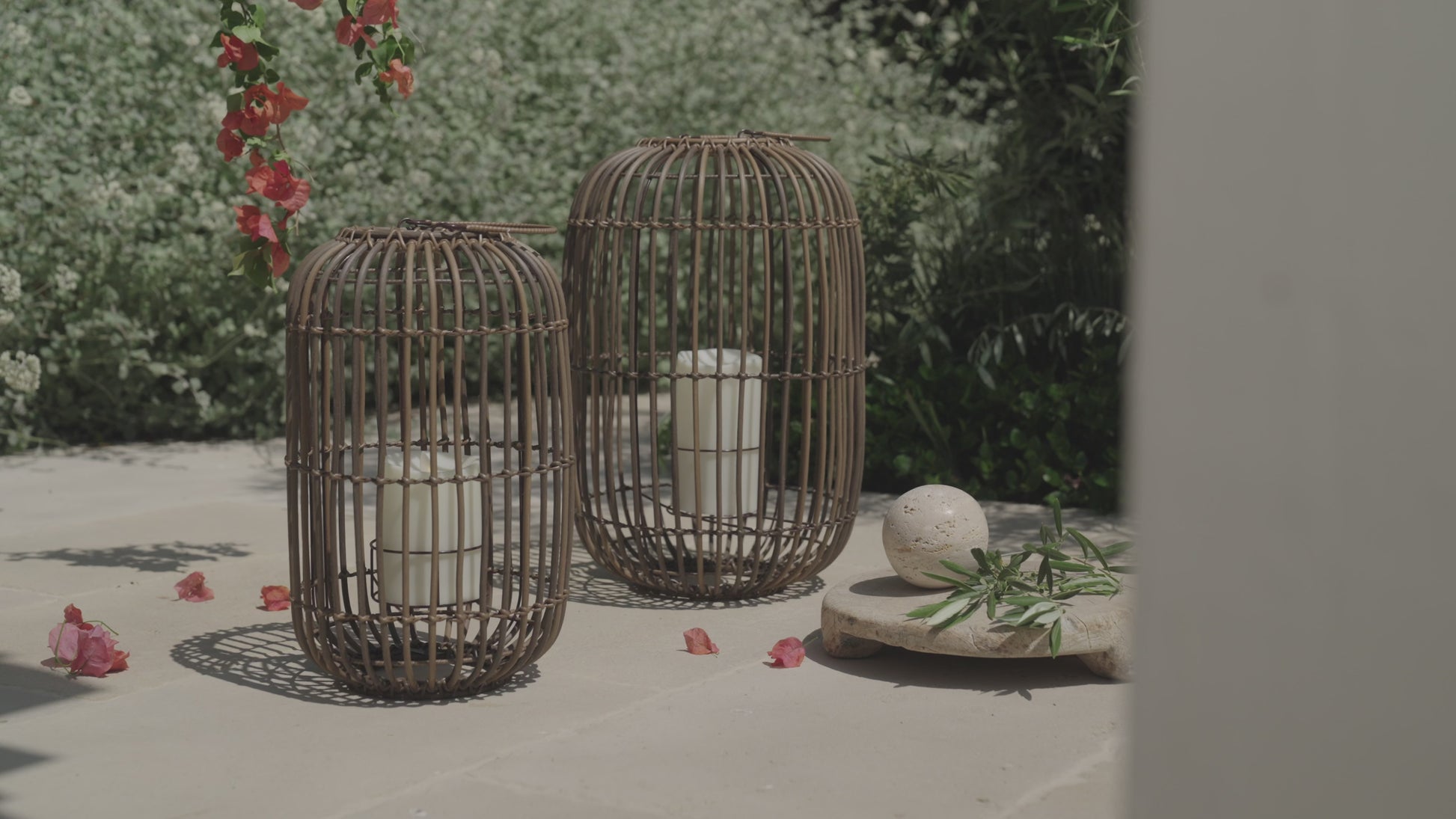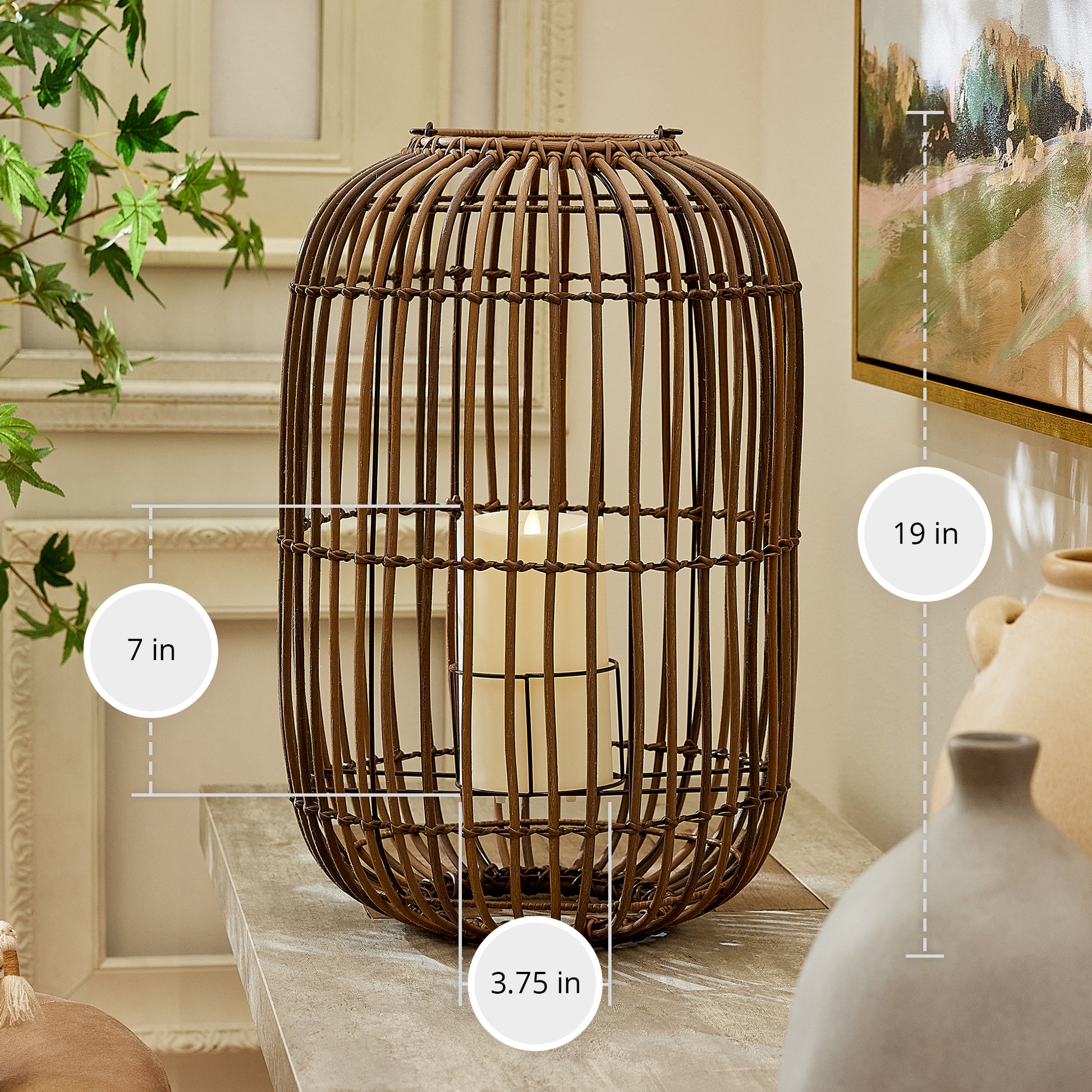 Artisan made to capture a rustic yet refined aesthetic, the Rattan Inspired Lanterns by Luminara beautifully filter light and can be used both indoors or outdoors. Made with a solid stainless-steel frame and HDPE resin, the lanterns are crafted to resemble weathered brown wicker for a causal, natural look and feature a classic weather-resistant Luminara flameless candle pillar that will cast worry-free, warm ambient lighting all season long.