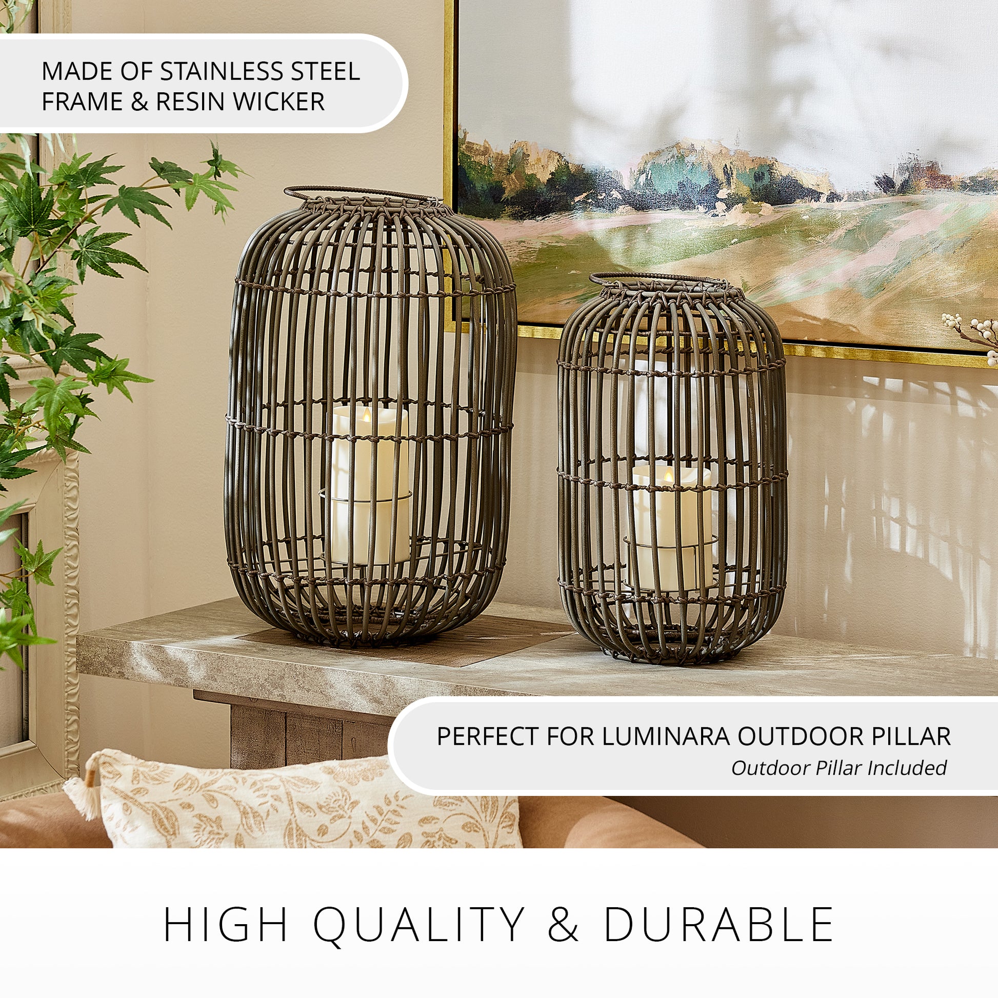 Luminara’s Rattan Inspired Lanterns add a casual yet sophisticated look to compliment the natural elements of the spring season. The understated, rustic quality of the Luminara lanterns looks chic and effortless whether using them indoors or outdoors. Crafted to have a weathered grey wicker-like finish, the lanterns are made using a solid stainless-steel frame and HDPE resin materials and feature a weather-resistant flameless candle pillar that offers a safe, durable, and timeless glow.