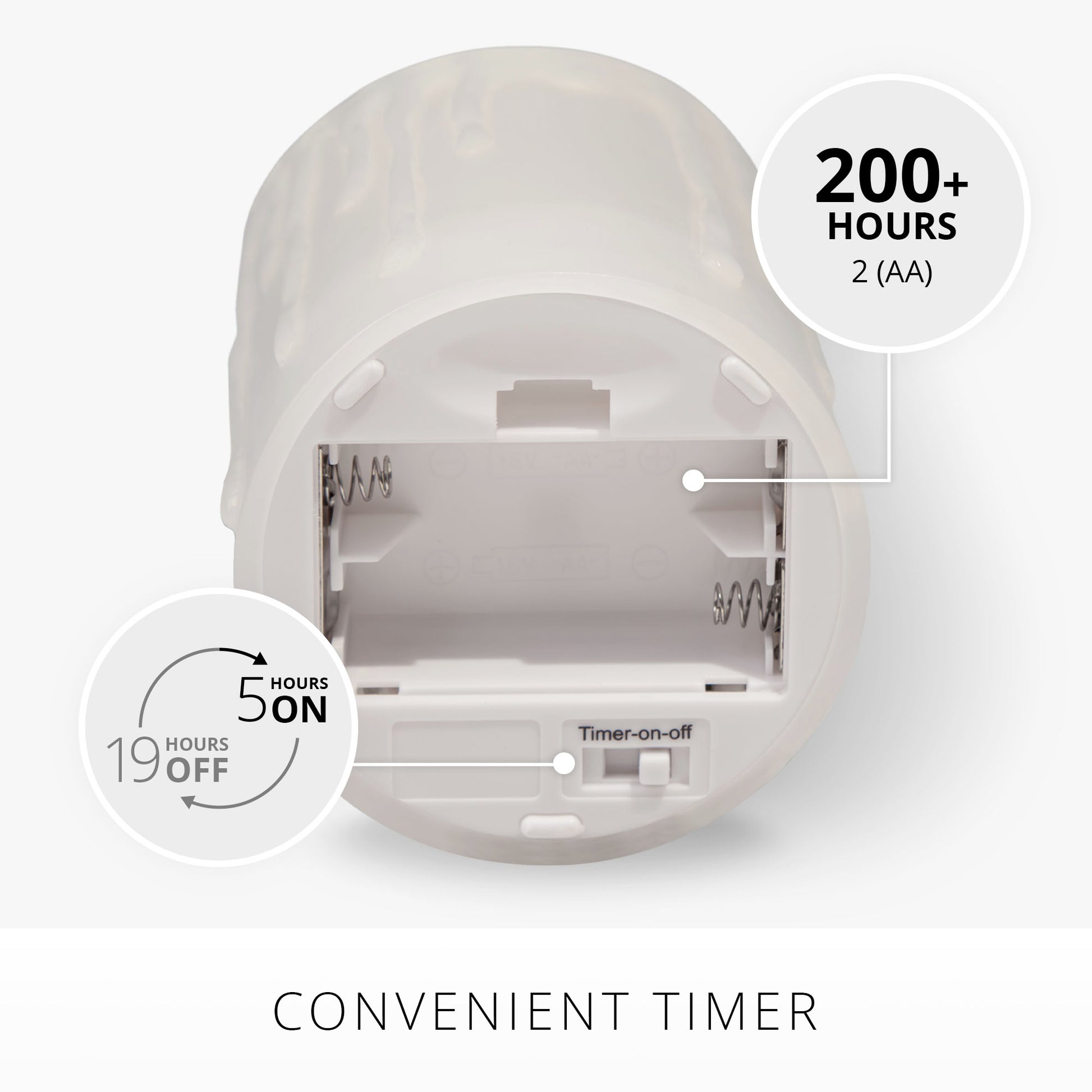 The exterior shells of our candles are made through the traditional, hand-poured wax method of candle making. The technology inside of the candle brings the realistic effect of a moving flame.